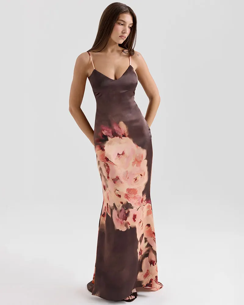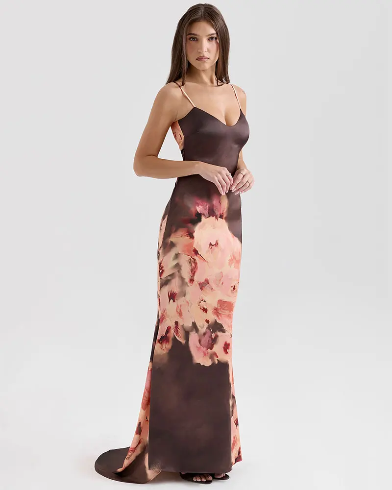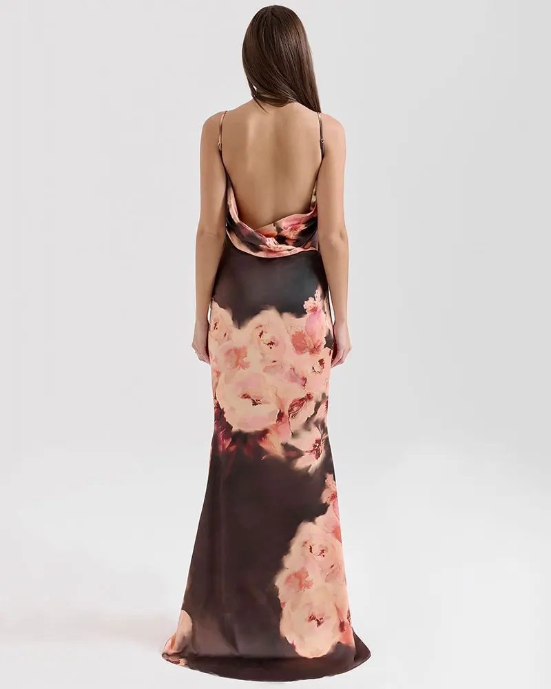 Printed Sling Maxi Dress For Woman Summer Fashion Robes Sexy Backless Slim Bodycon Club Party Evening Long Dresses