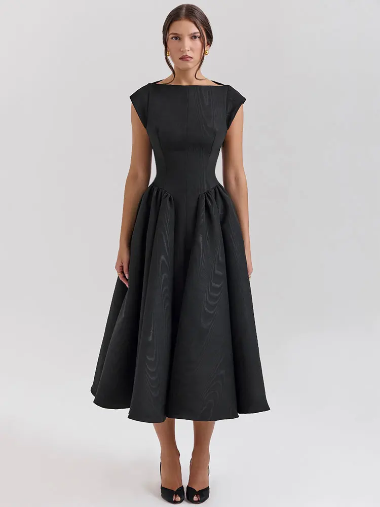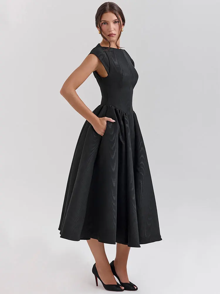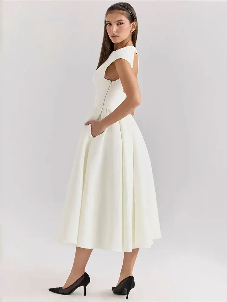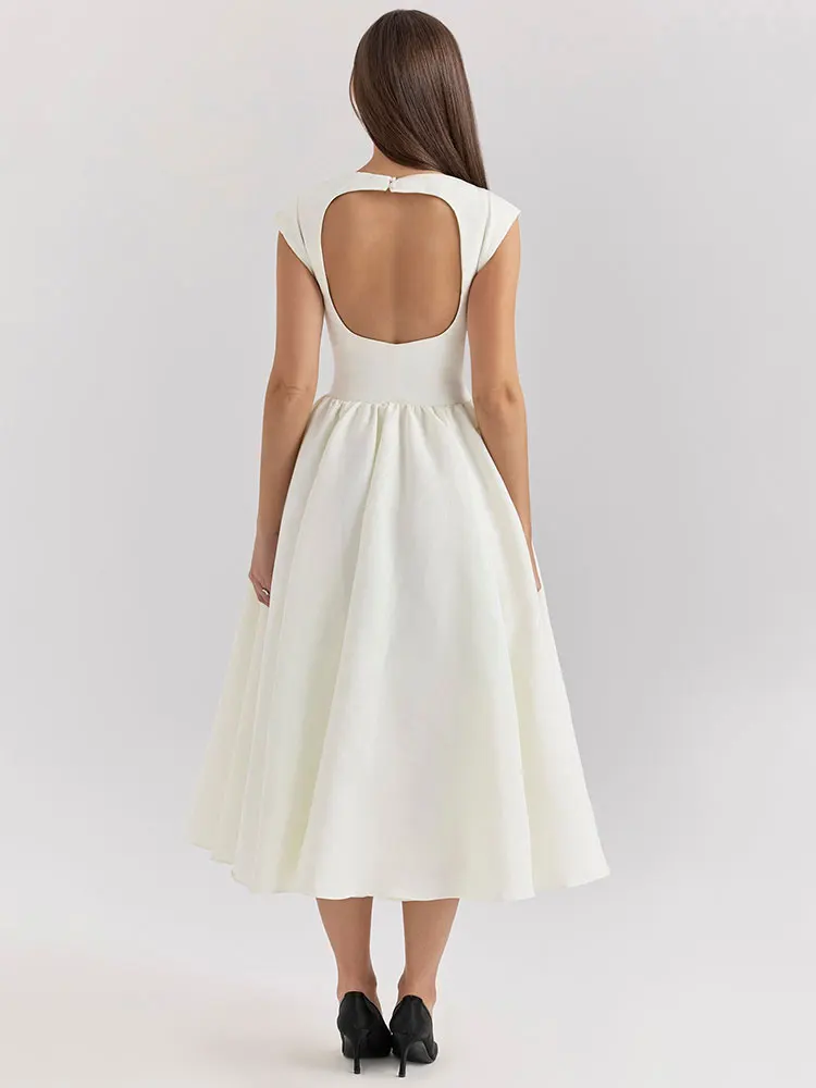 Elegant White Backless A-line Sexy Maxi Dress For Women Gown Hollow Out Sleeveless High Waist Club Party Pleated Dress
