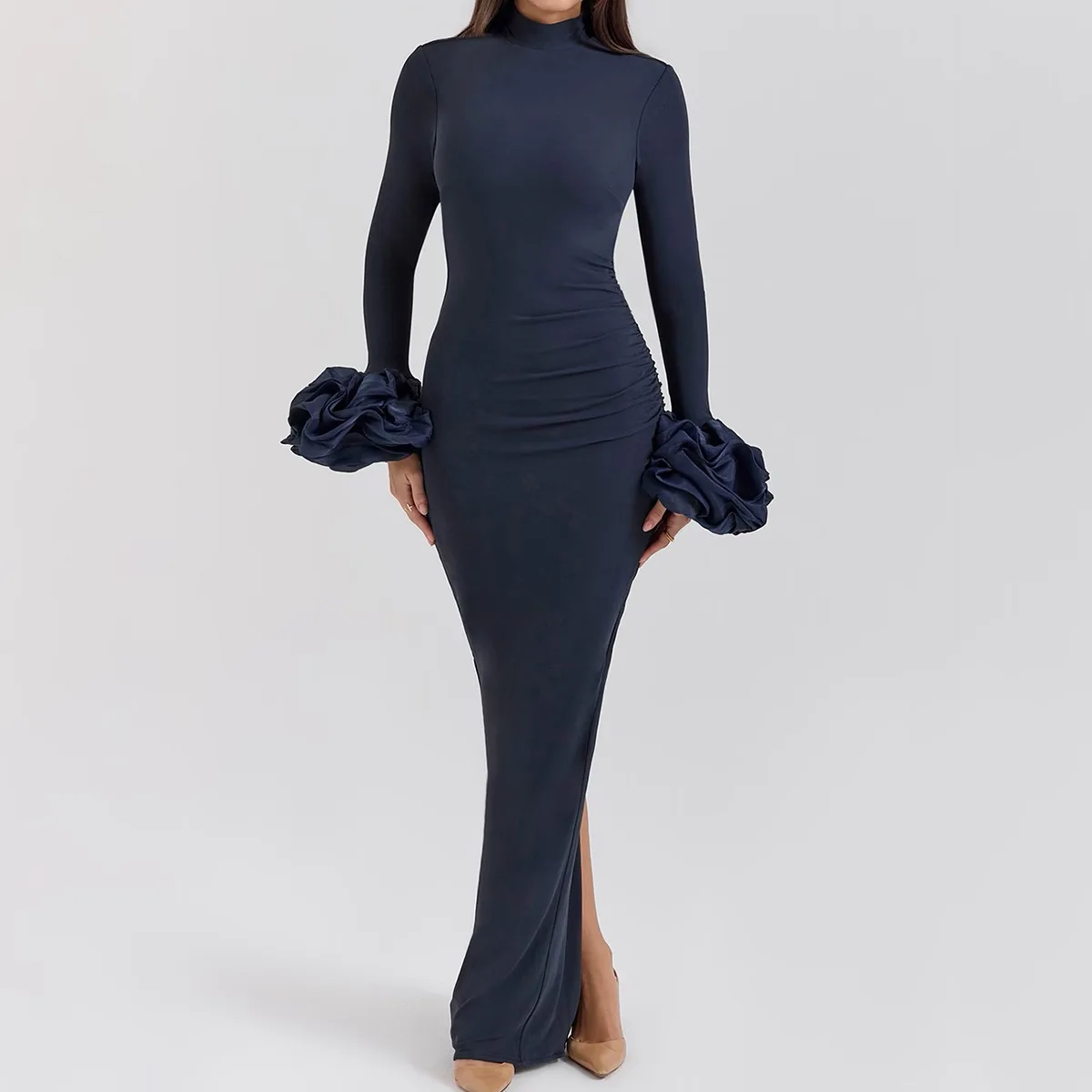 Flower Sleeve Sexy Slit Bodycon Maxi Dress for Women Autumn Winter High-grade Club Party Ladies Long Dress