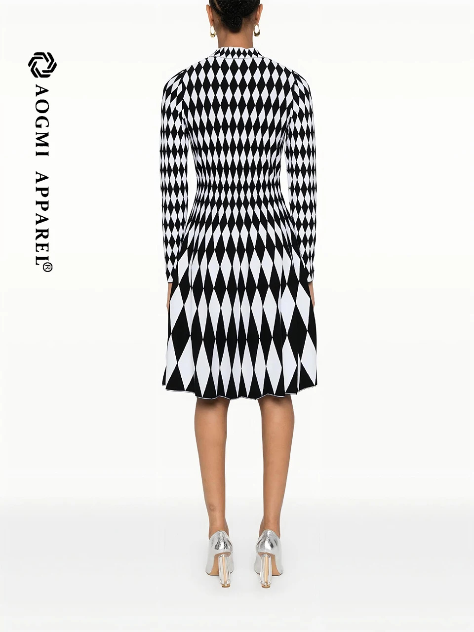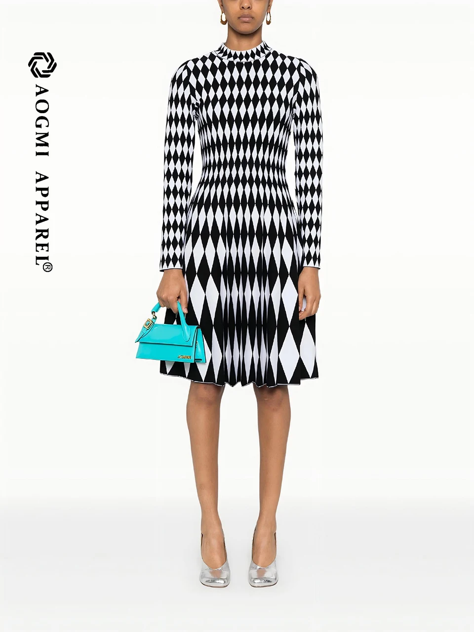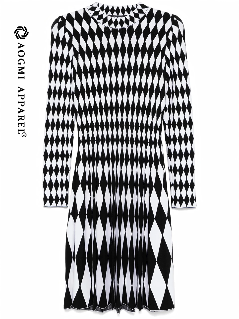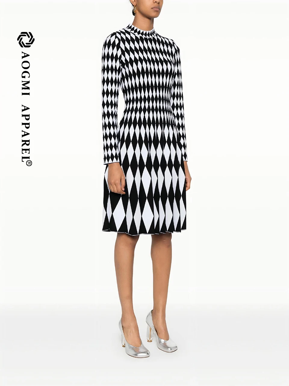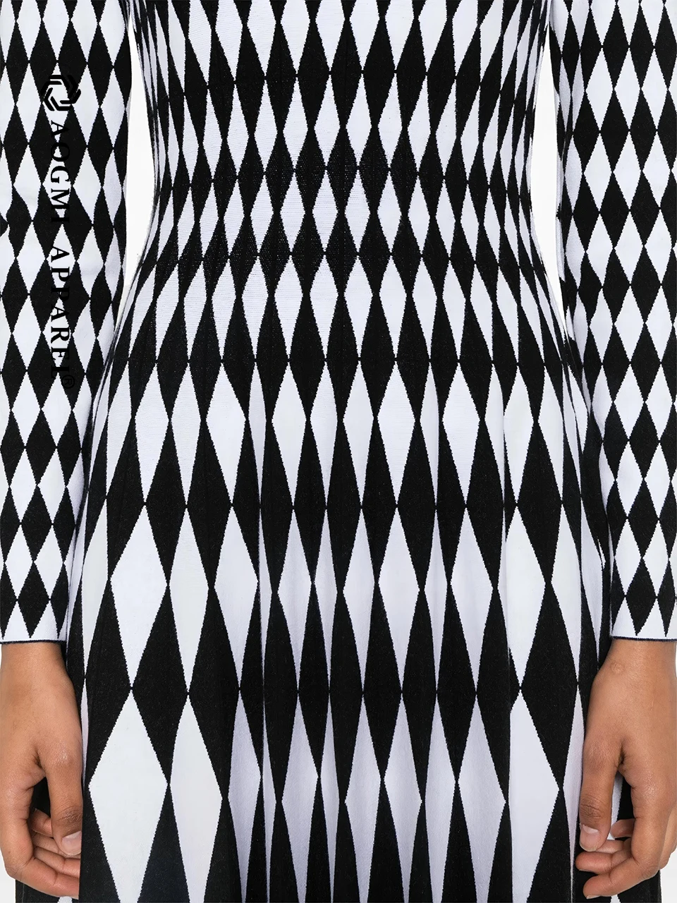 Women's O-Neck Black and White Contrast Casual Midi Dress Microfiber Material Eco-Friendly & Breathable