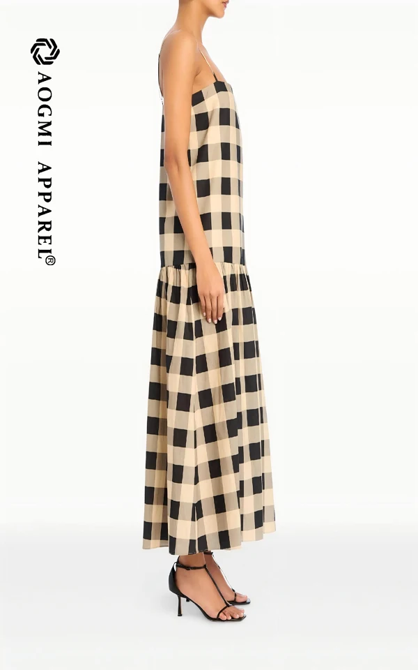 Couture Casual off Shoulder Maxi Dress 100% Silk Taffeta Fabric Sleeveless Breathable & Anti-Wrinkle Loose Fit