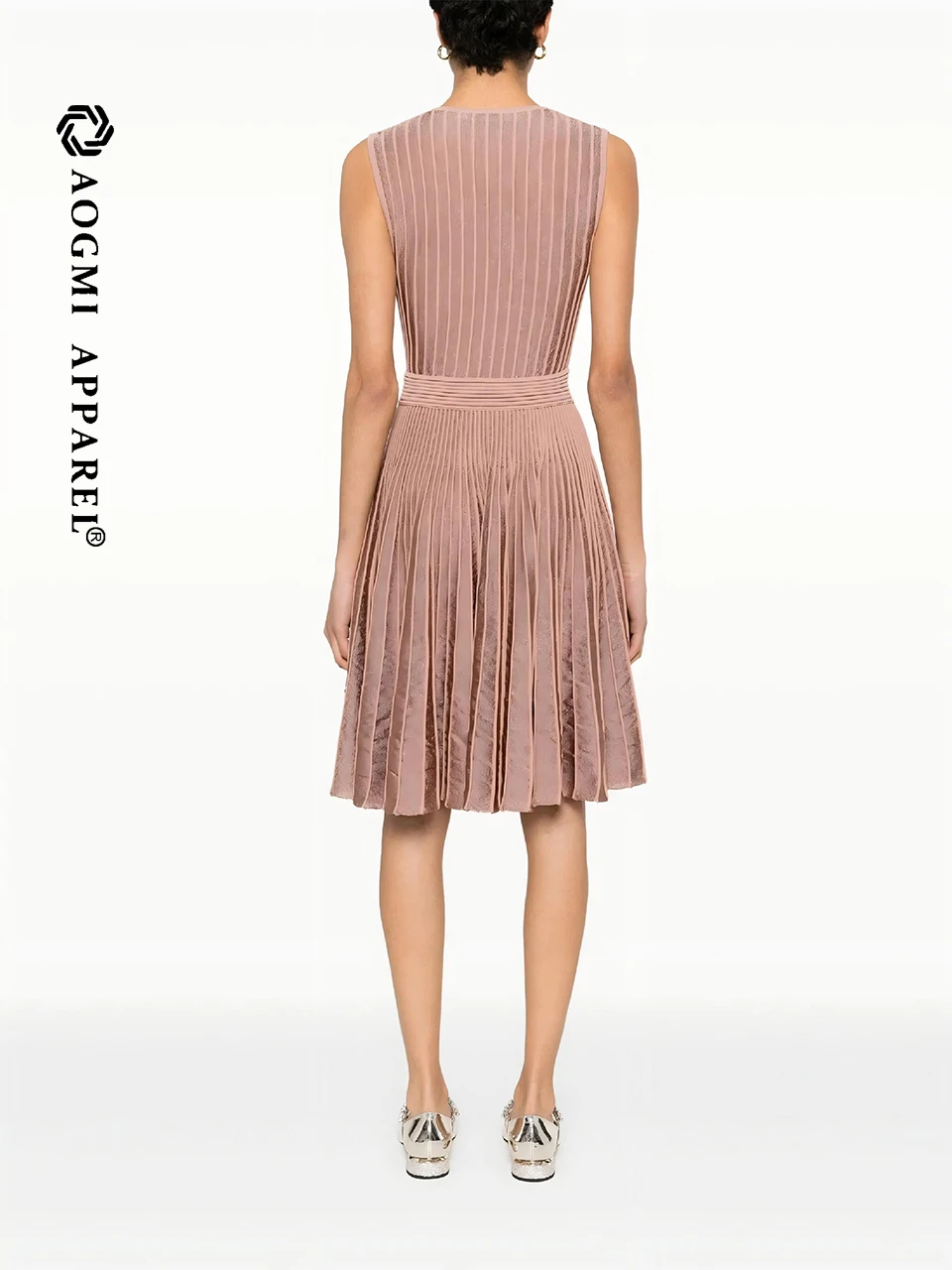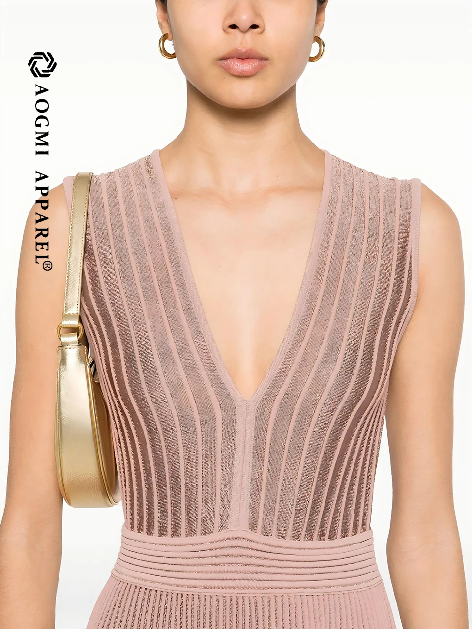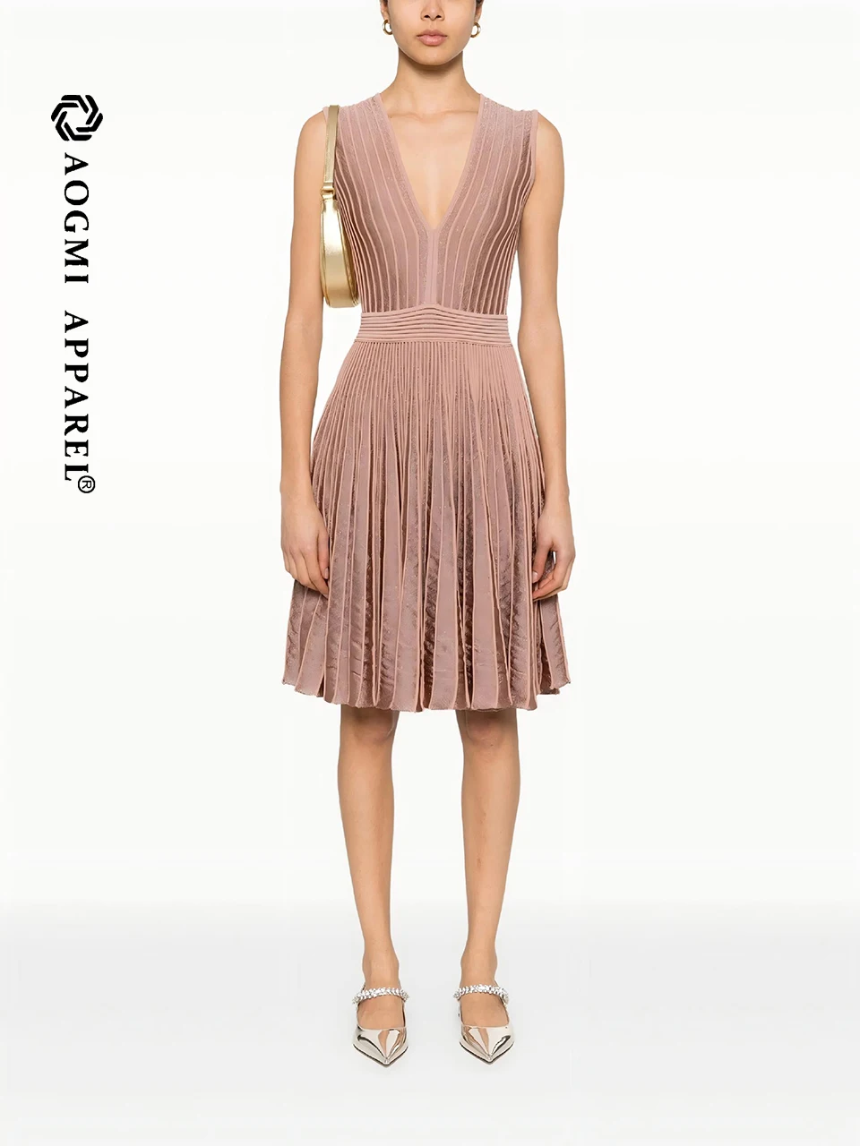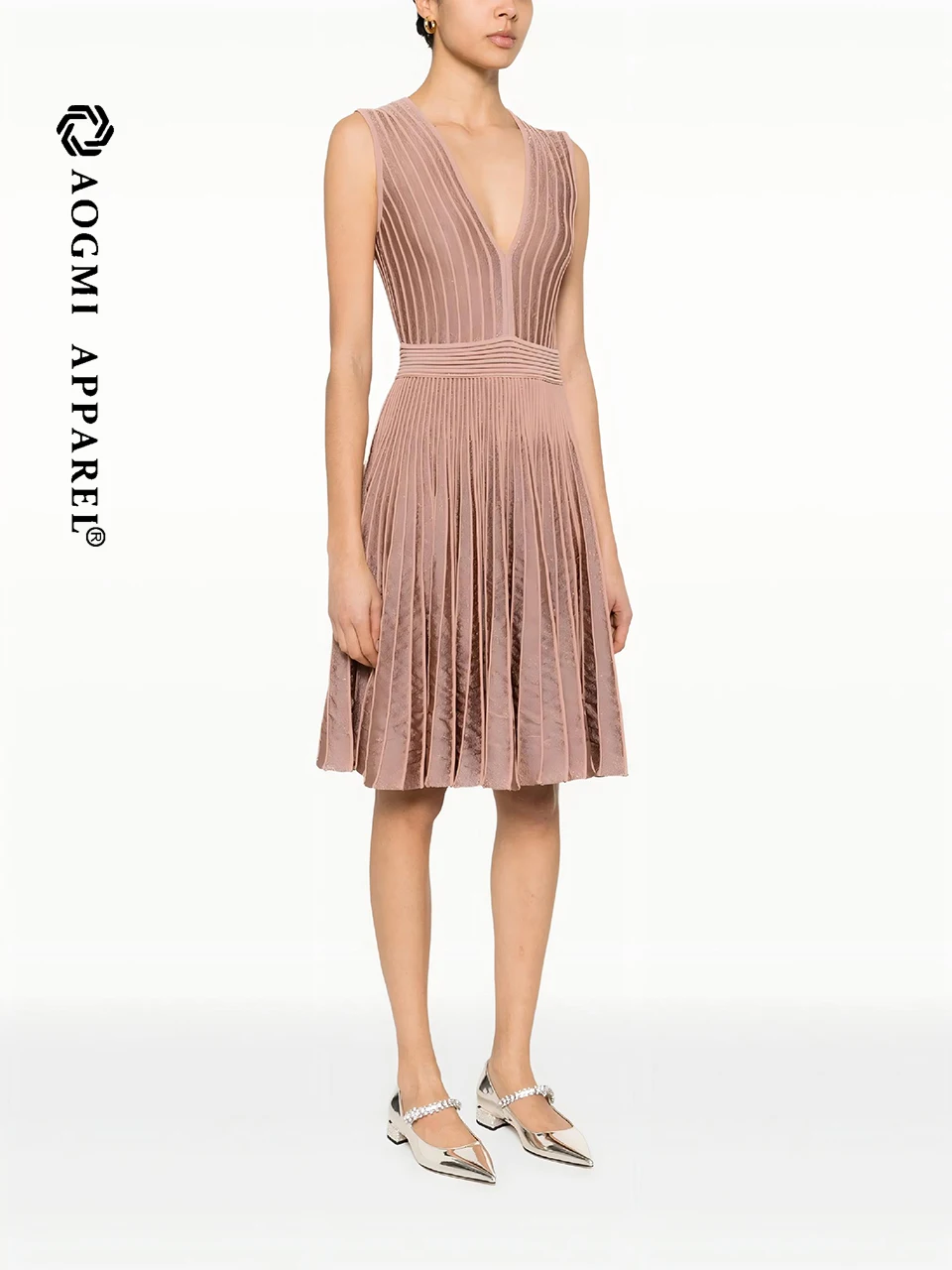 Luxury Ladies A-Line Gown V-Neck Sleeveless Satin Lace Midi Dress Breathable Eco-Friendly