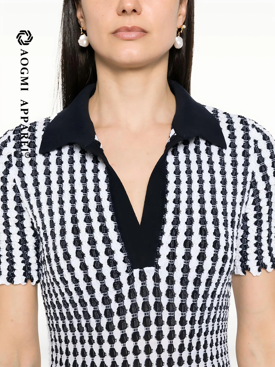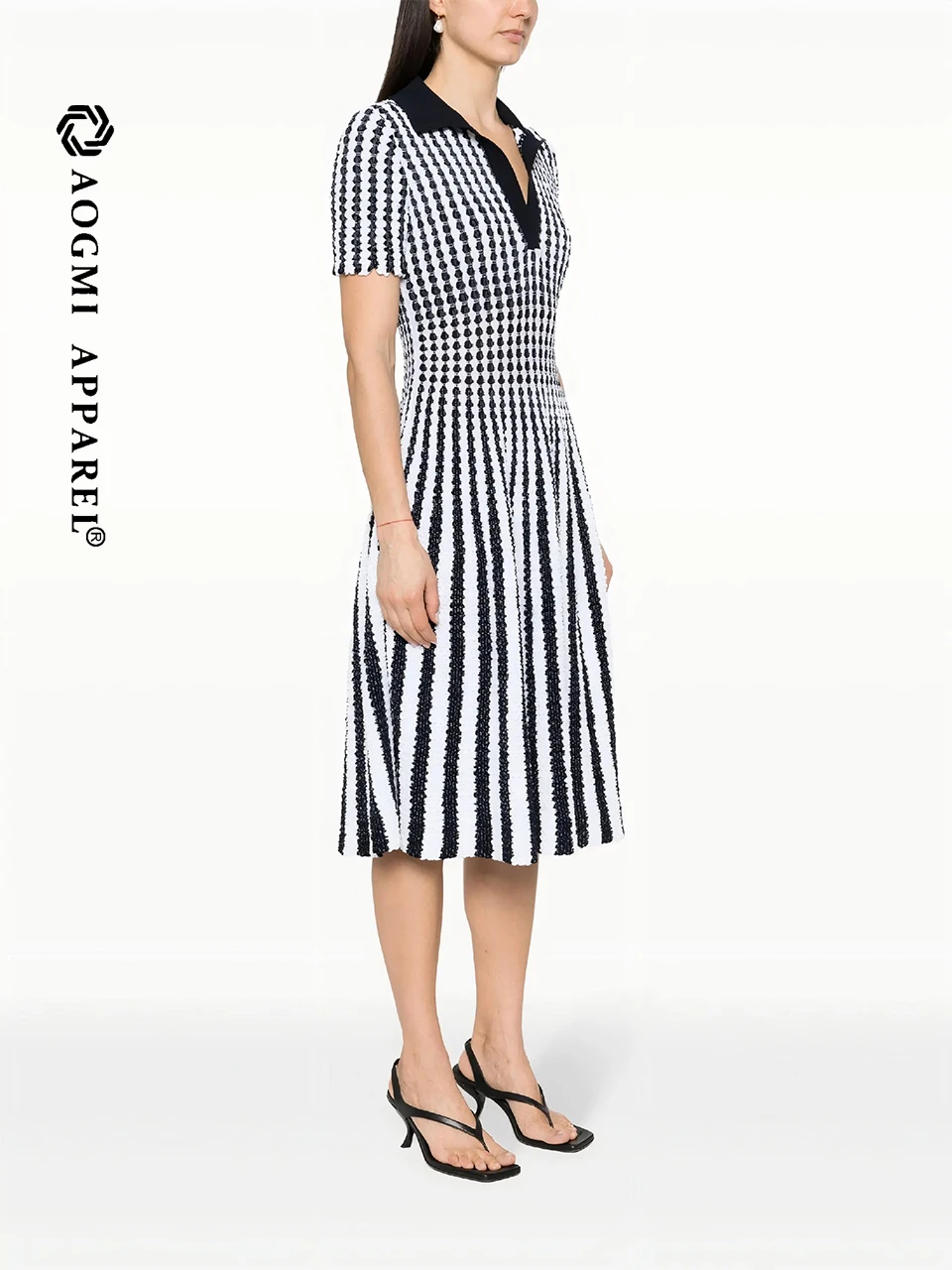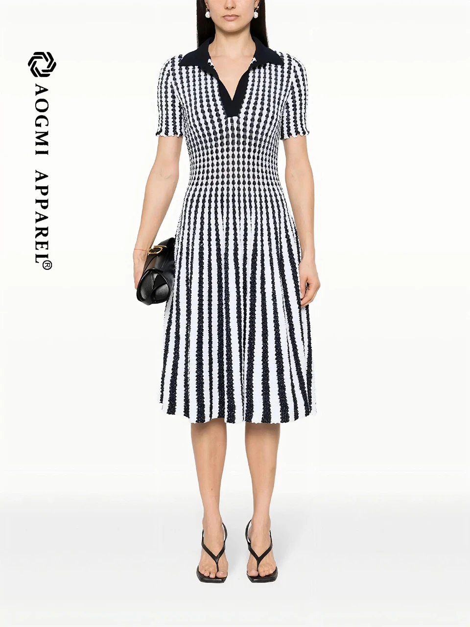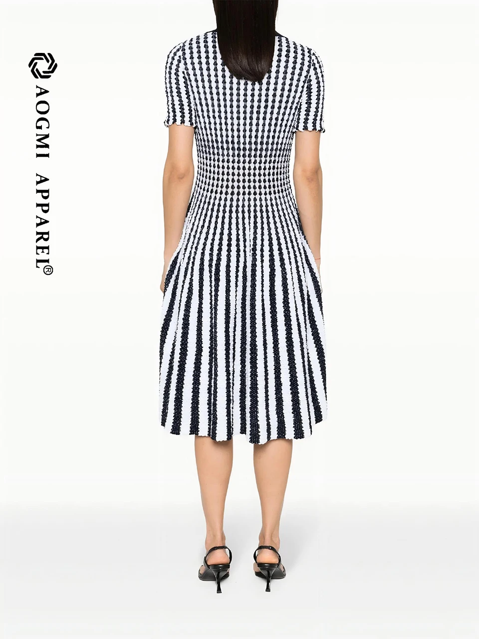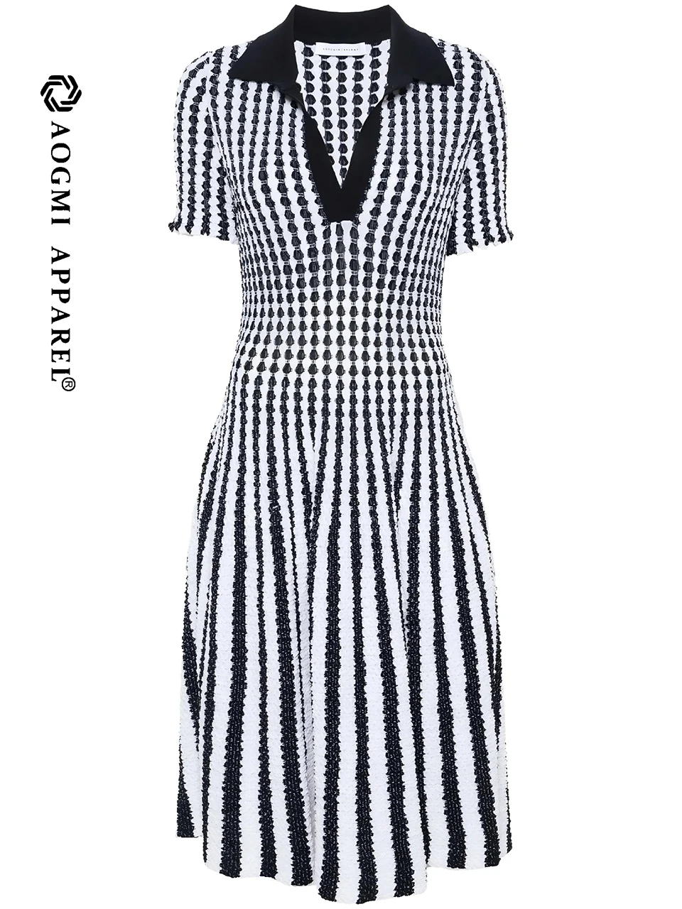 AOGMI Haute Couture Fashion Ladies Retro Contrast Short-Cuff Striped 100% Cotton A-Line Summer Maxi Dress
