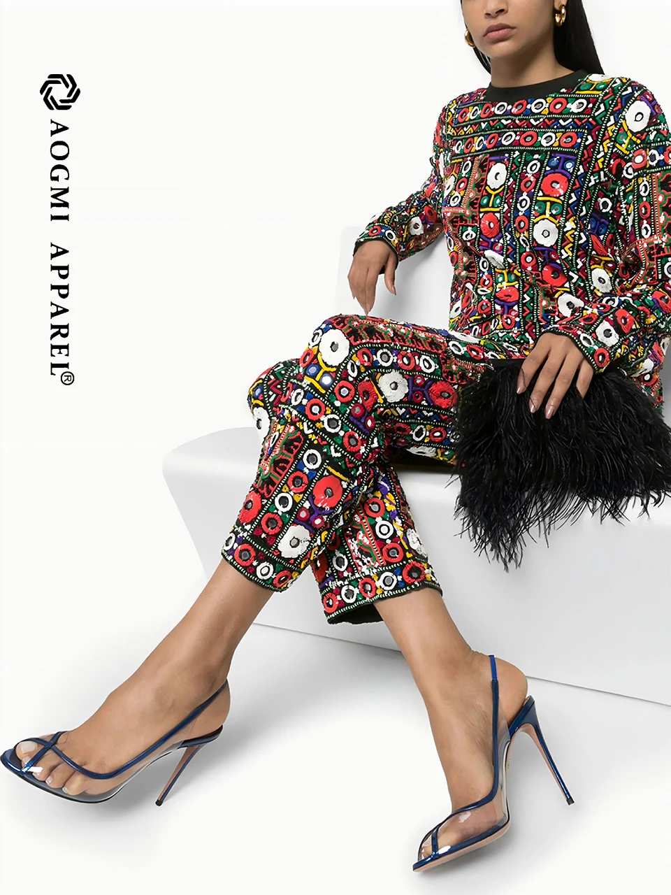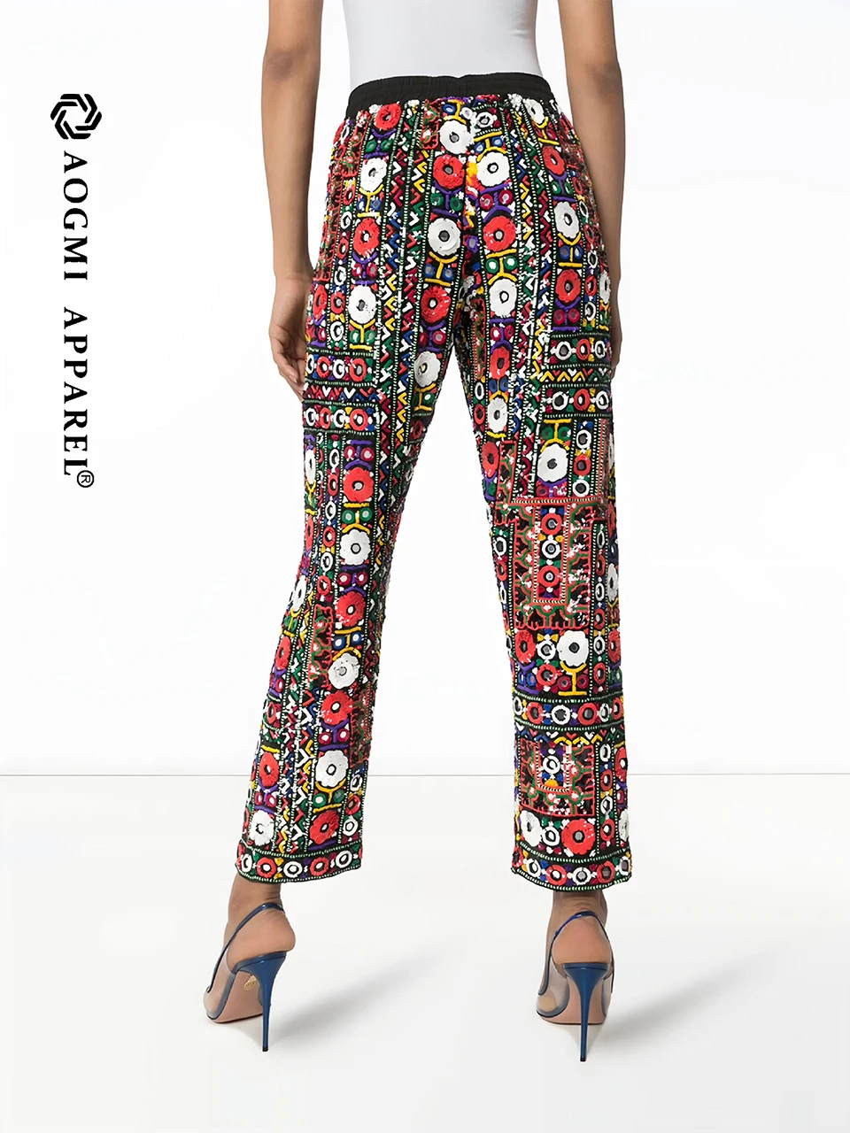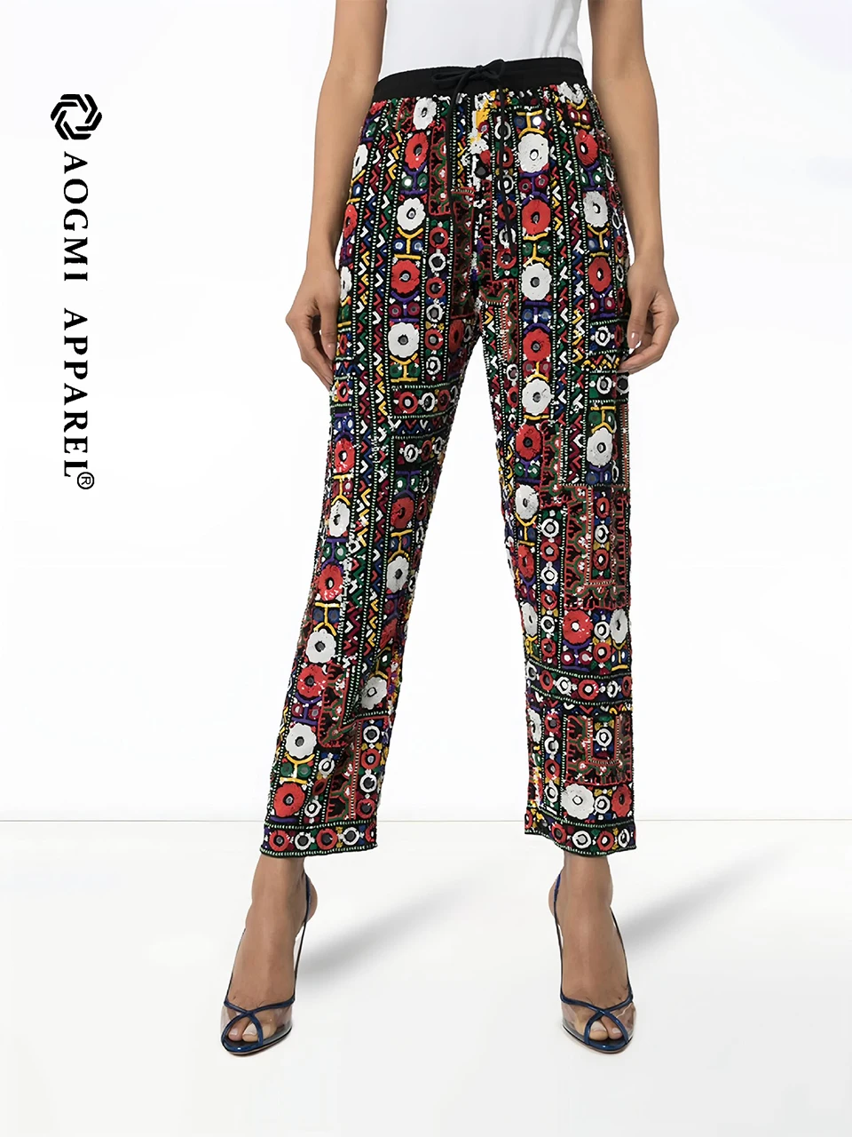 AOGMI Haute Couture Fashion Ladies Cotton Comfortable Loose Multicolor Joker Straight Pants with Elastic Waist Anti-Wrinkle