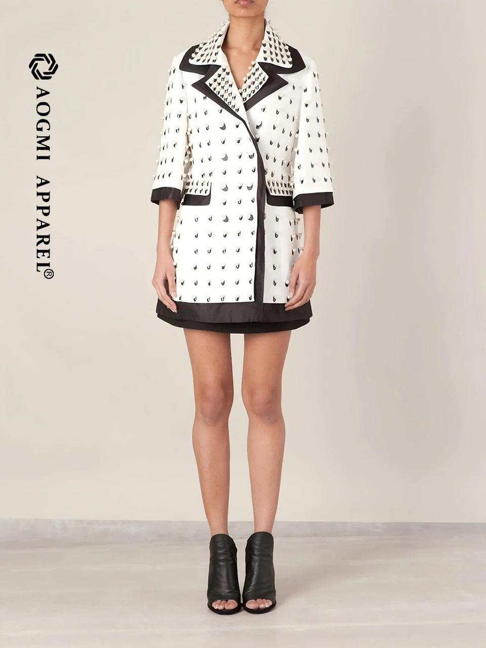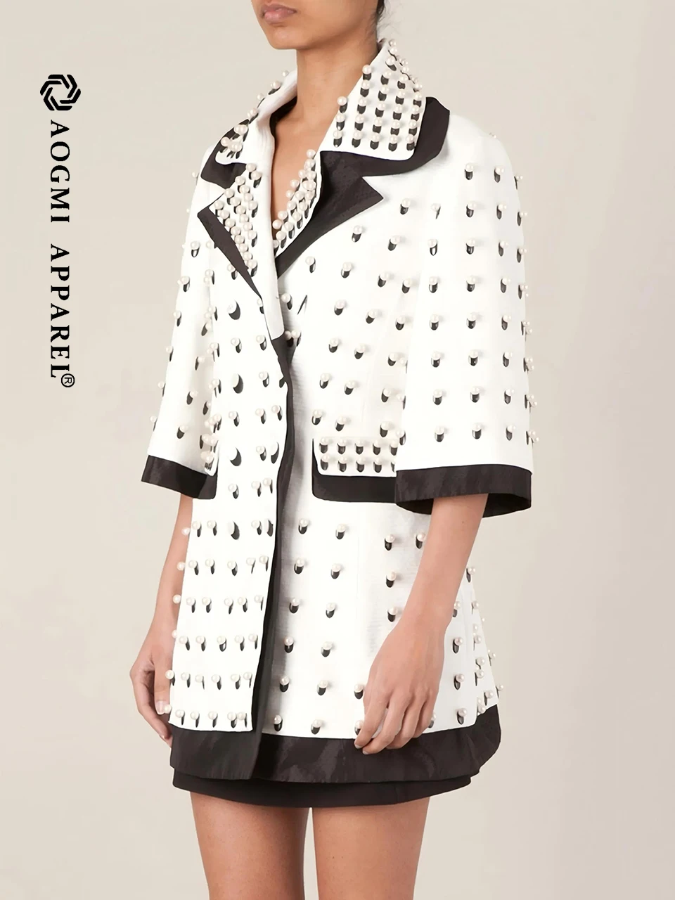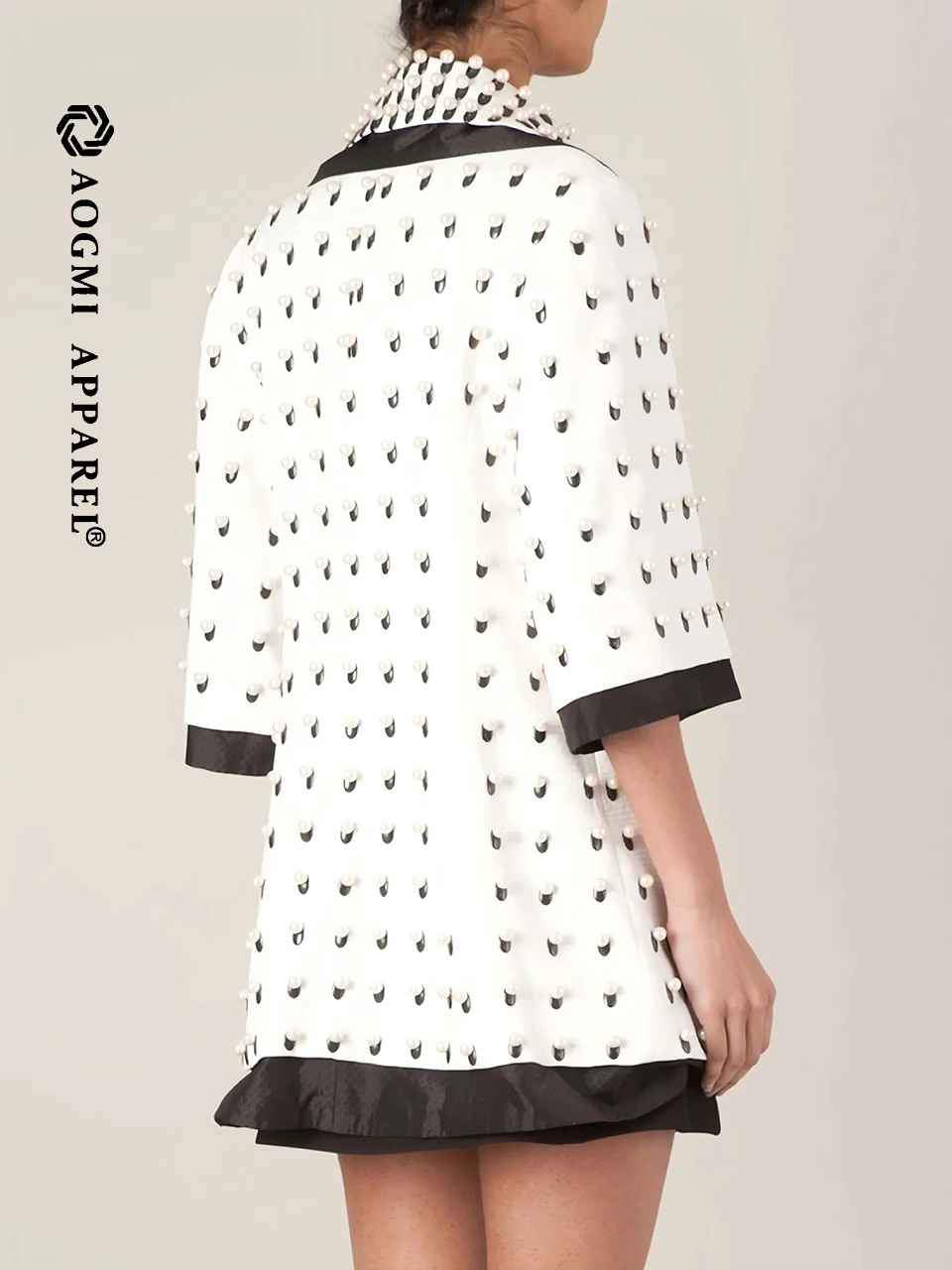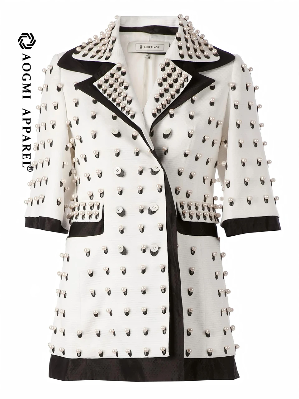 Haute Couture Fashion Ladies Slim High Quality Warm Pearl-Inlaid Delicate Detail Triple Breasted 100% Cotton Eco-Friendly Coat