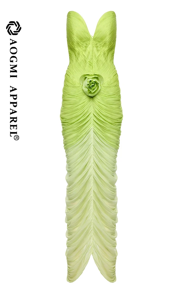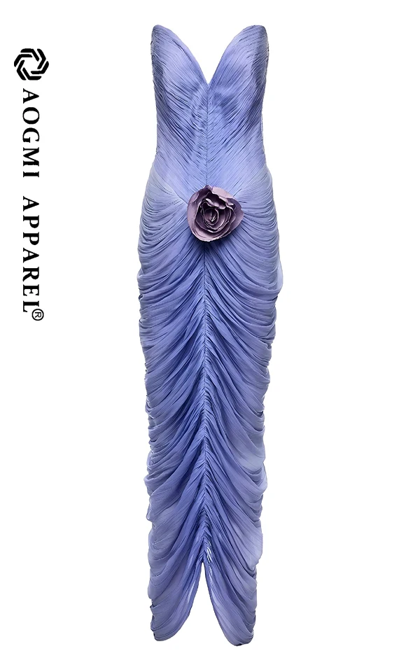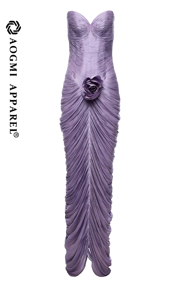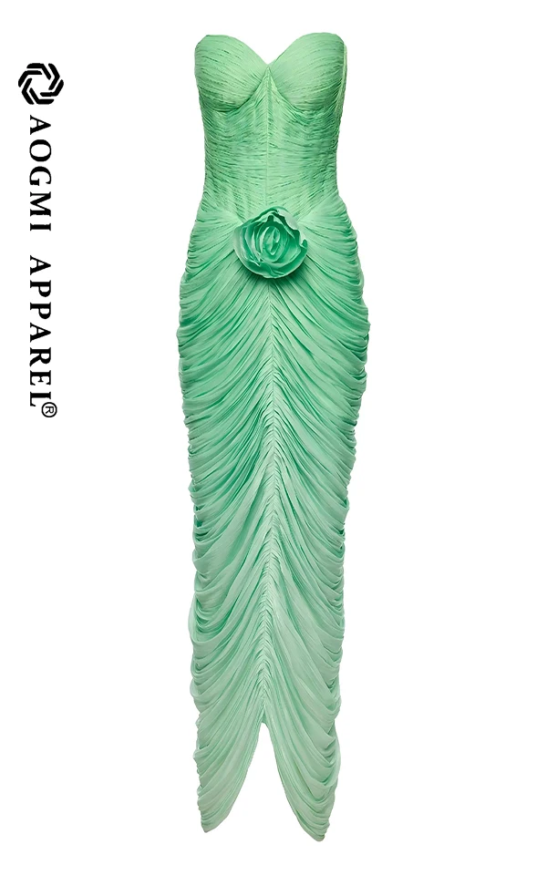 High-End Custom Fashion Ladies New Women's Off-The-Shoulder Ruffled 3D Flower Maxi Satin Sheath Gown Elegant Summer Clothing