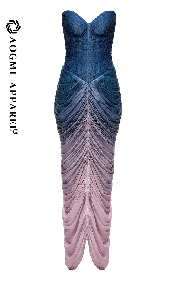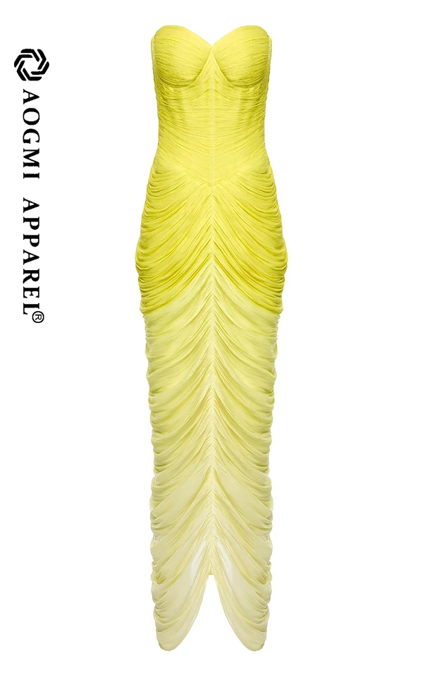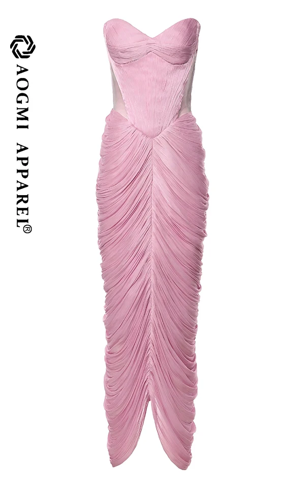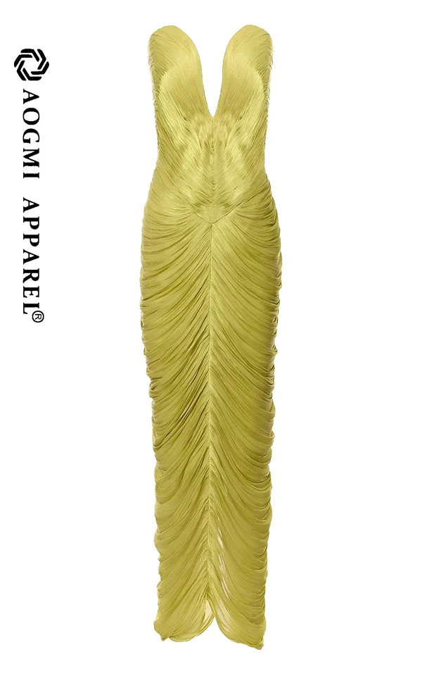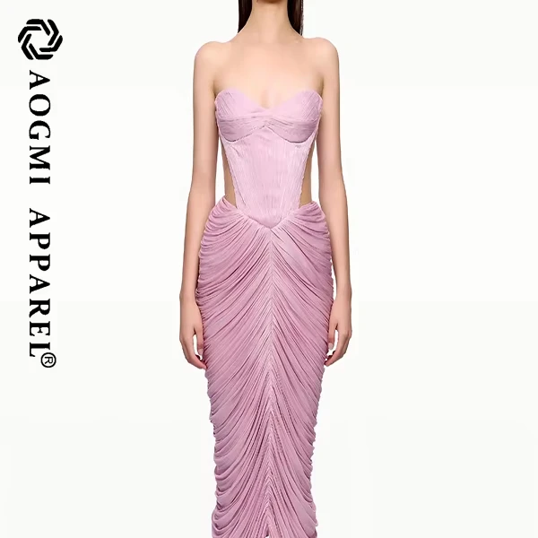High-End Luxury Ladies Maxi Sheath Gown with Draped 3D Pleated Sleeveless Strapless Backless Waist Slimming Design