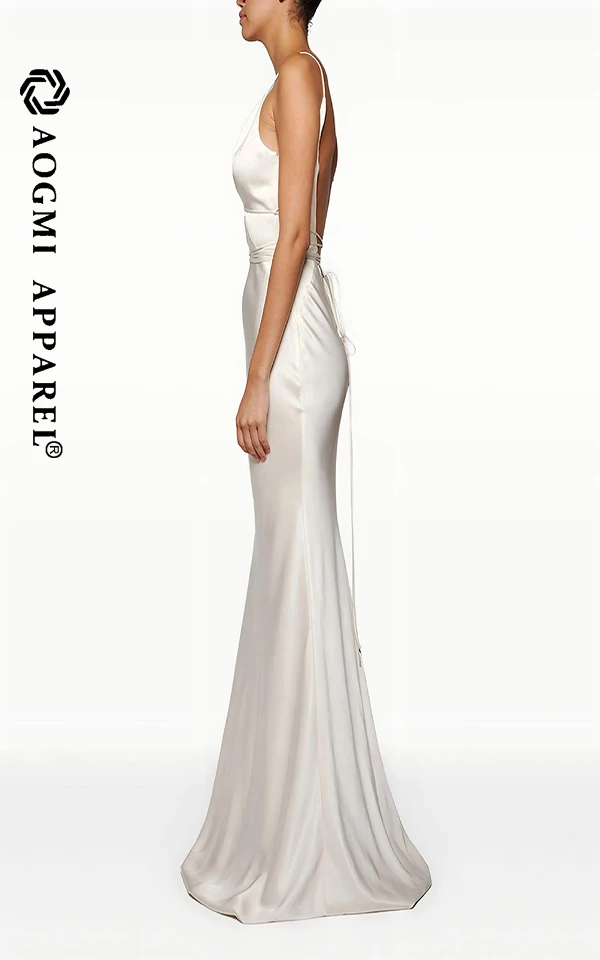 Haute Couture Luxury Fashion Ladies Mermaid Gown Satin Bodice Sleeveless Backless Off-the-Shoulder Floor-Length Elegant