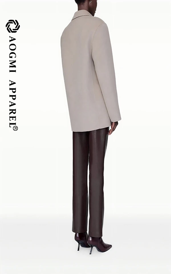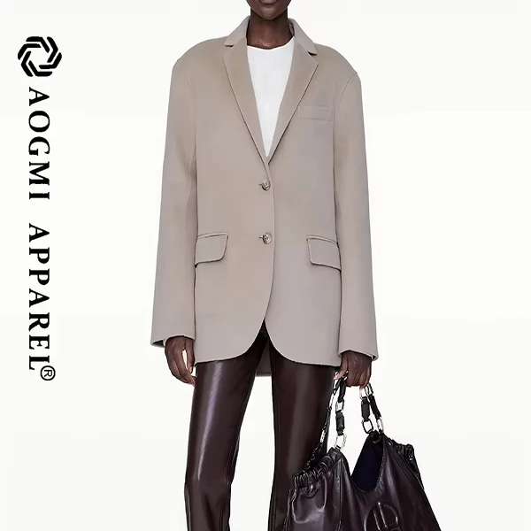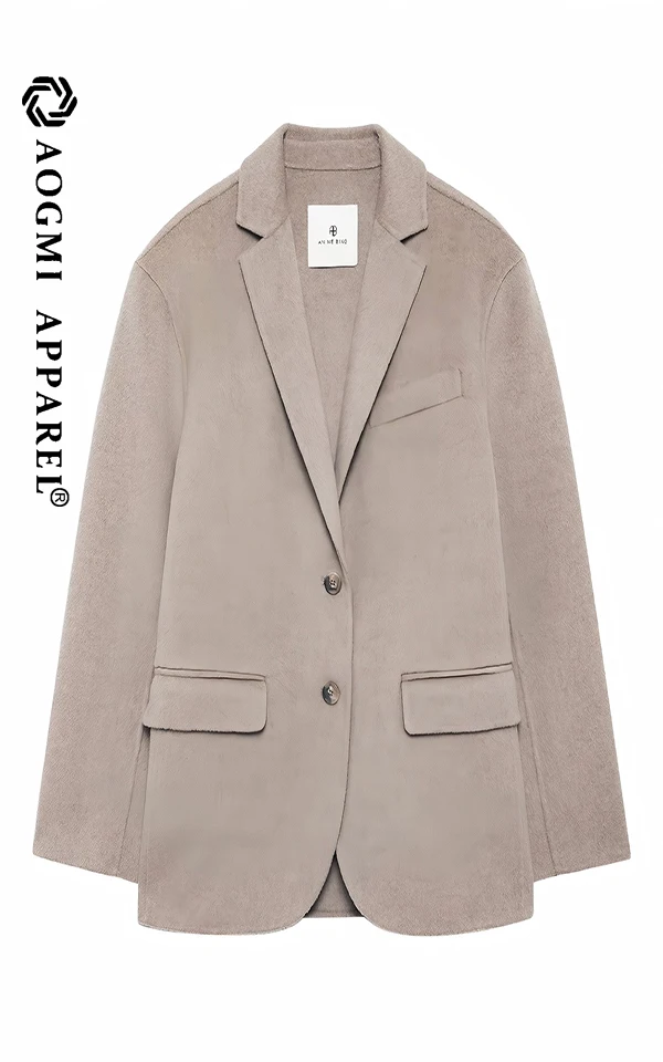 Haute Couture Fashion Ladies Elegant Women Formal Slim Office Suit Double Breasted V-neck Wool/Viscose Anti-Wrinkle Full Sleeve