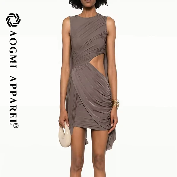Haute Couture Fashion Ladies Sleeveless Knee Bodycon Satin Eco-Friendly Pleated Hollow Sweetheart Neck Irregular Hip Sheath Gown