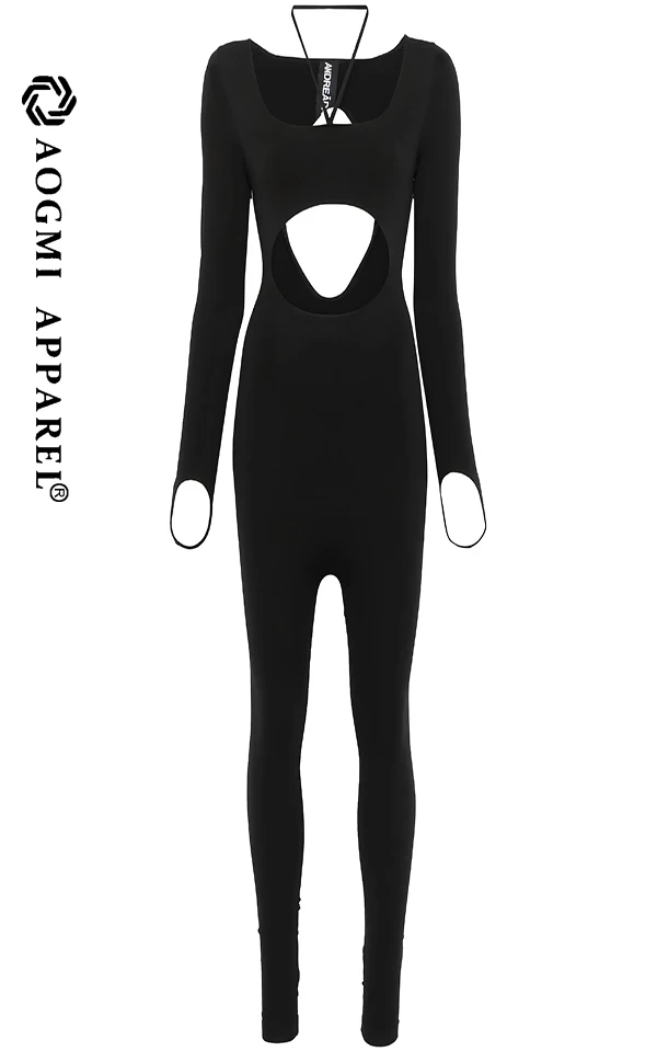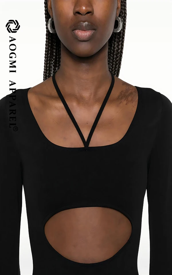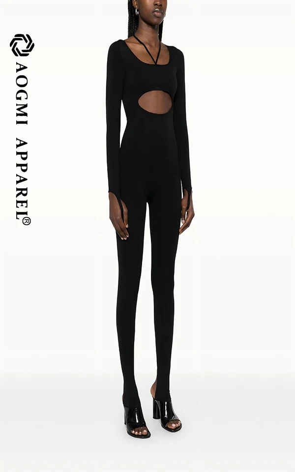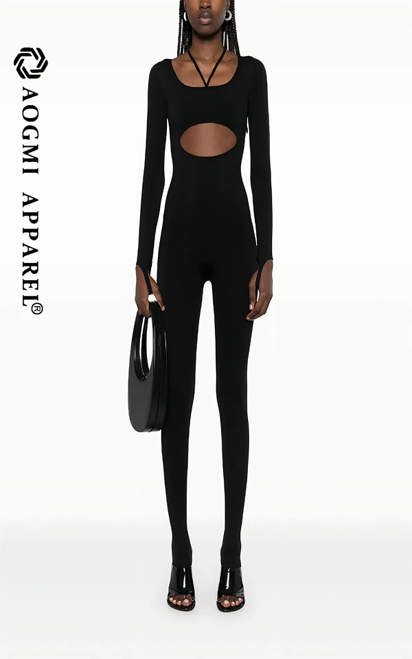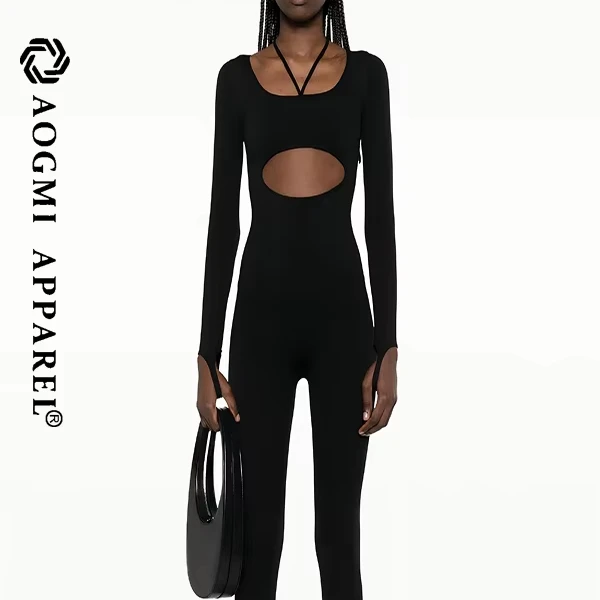 Haute Couture Fashion Women's Activewear Front Back Hollow Square Collar Spandex/Cotton Jumpsuit with Butt-Lifting Tummy Control
