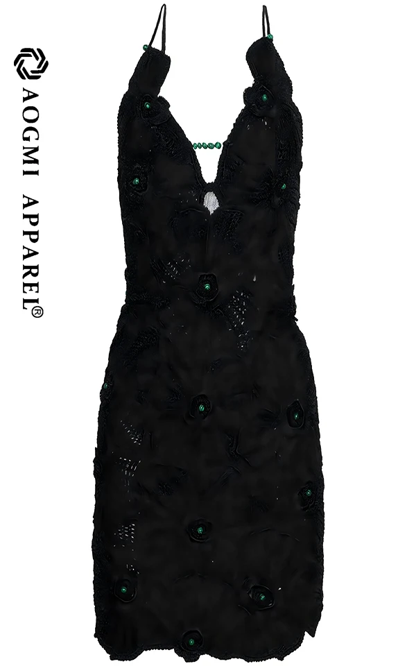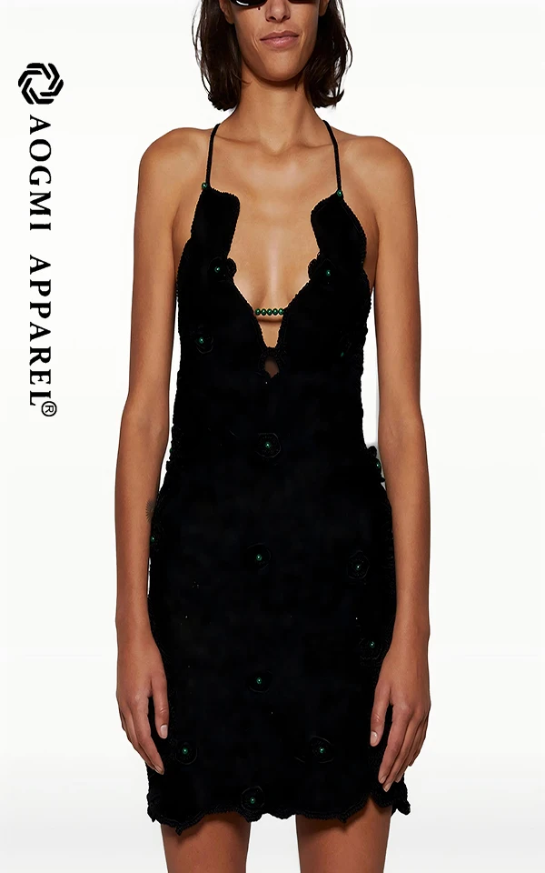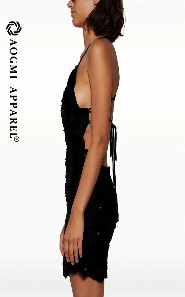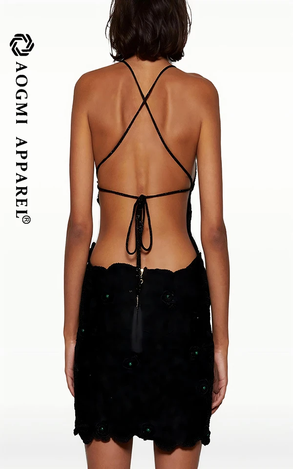 Haute Couture Fashion Women's Embroidered Beading Elegant Halter Neck Lace-up Backless Tea-Length Gown Bodycon Floral