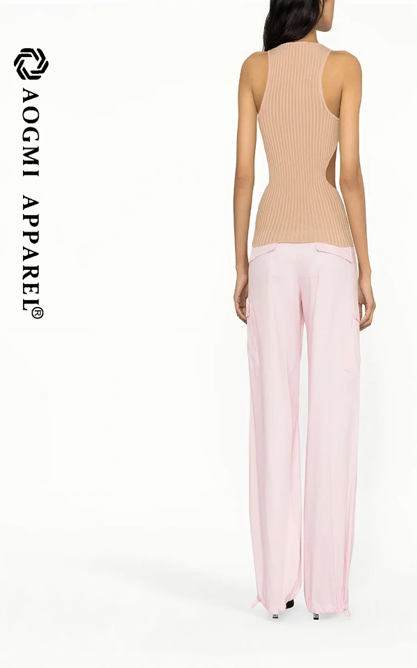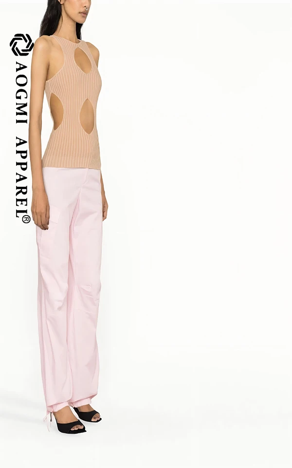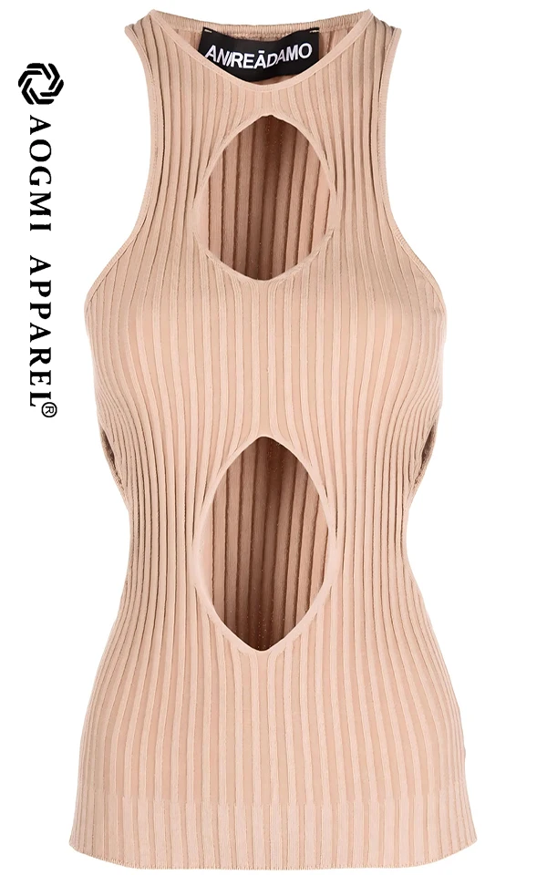 Haute Couture Vintage Fashion Ladies Sleeveless Cold Shoulder Front Cutout Breathable Cotton Knitted Casual Sweater