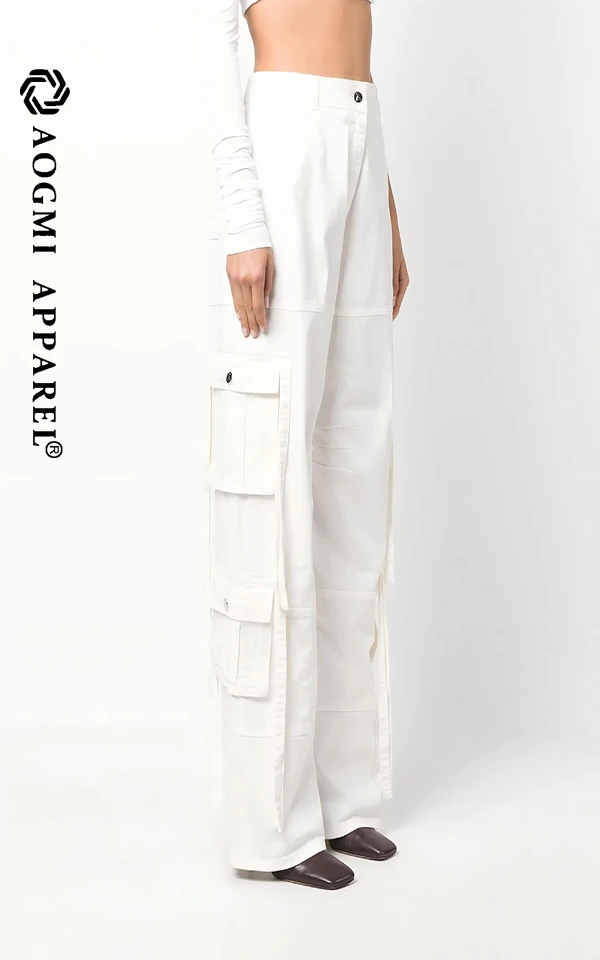 Haute Couture Fashion Ladies High Street Style Formal Wide Leg Eco-Friendly 3D Pattern Breathable Waist Denim Jeans Trousers