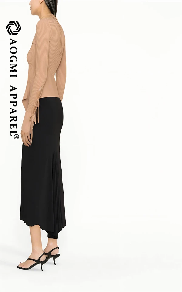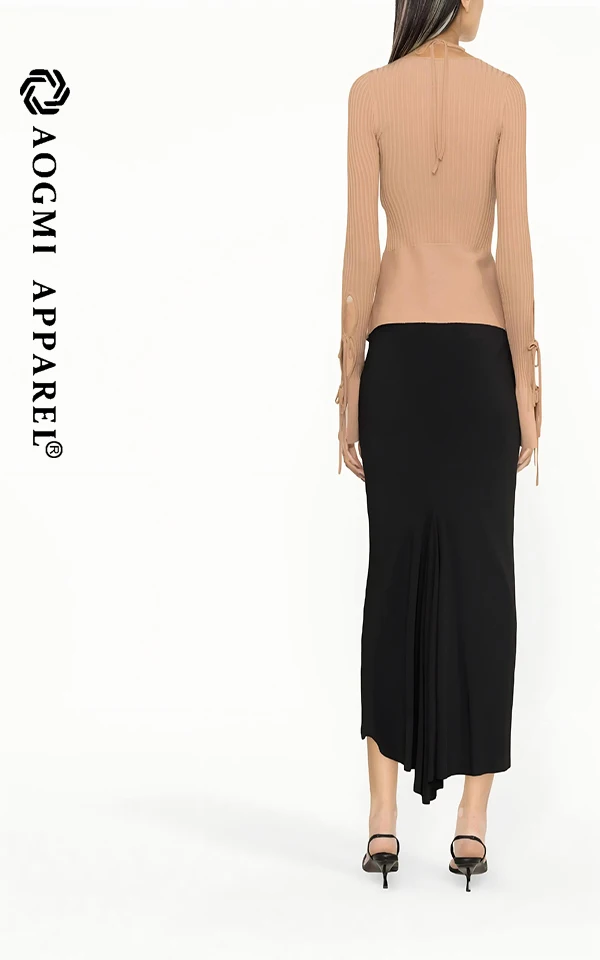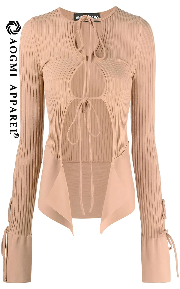 AOGMI Haute Couture Fashion Women's Sexy Cut Long Sleeve Sweater Turtleneck Tie Cardigan Rib Breathable Lace-Up Nylon/Cotton