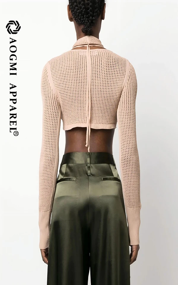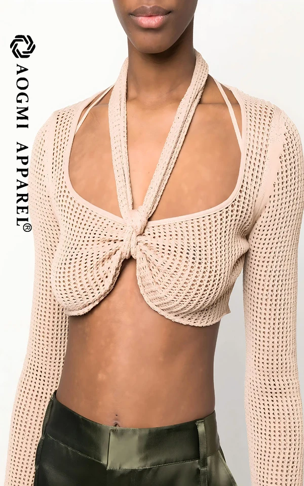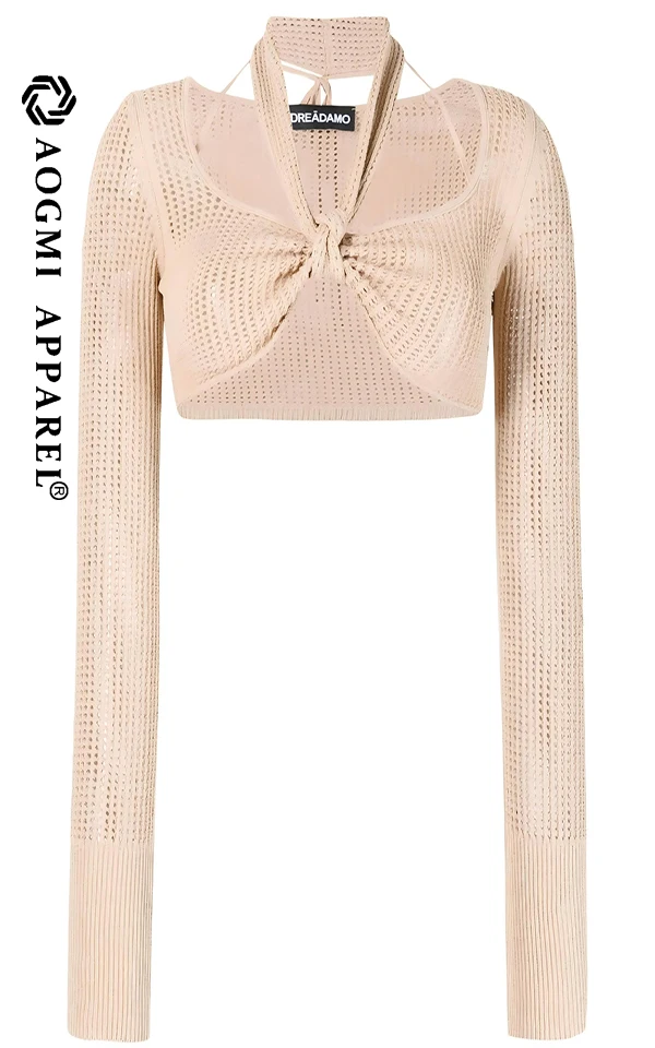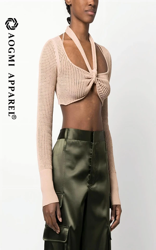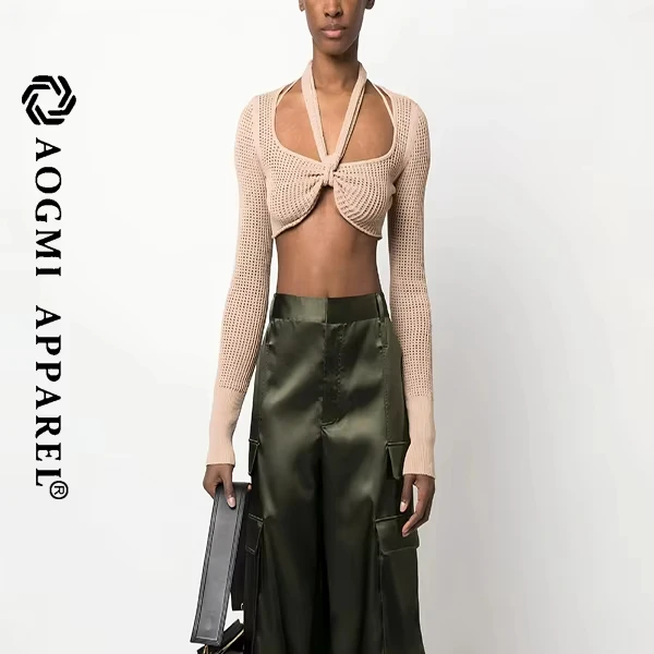 Haute Couture Fashion Women's Casual Long Sleeve Knit Tailoring Vest Front Tie Bandage Breathable 100% Cotton Camisole