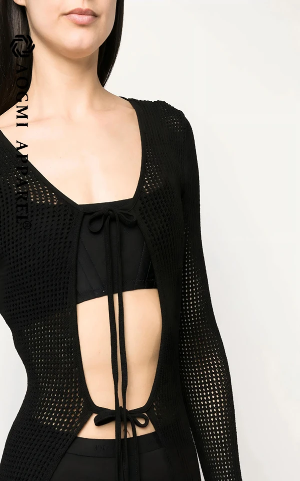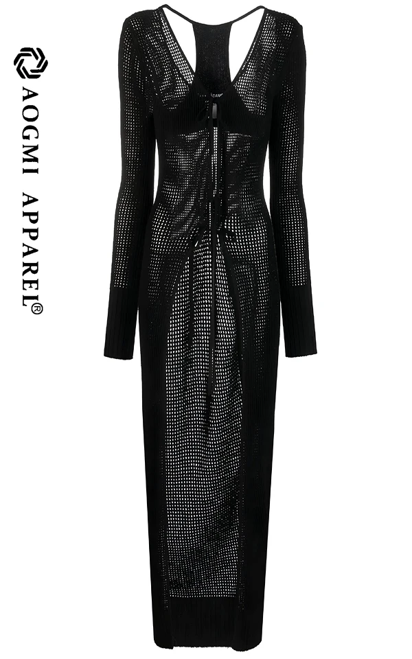 Haute Couture Luxury Tea-Length V-neck Ladies L Front Hollow Lace Chiffon Fabric Fashion Comfort