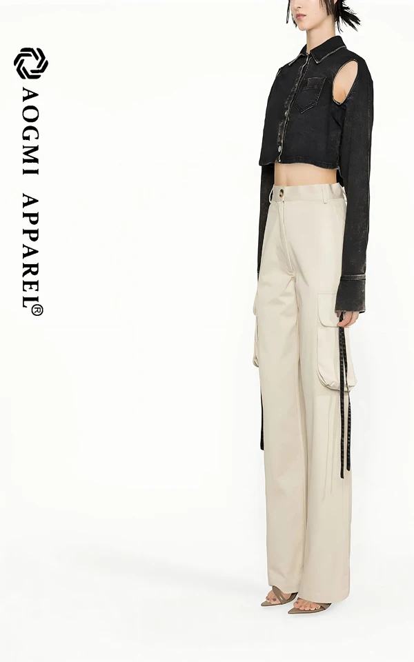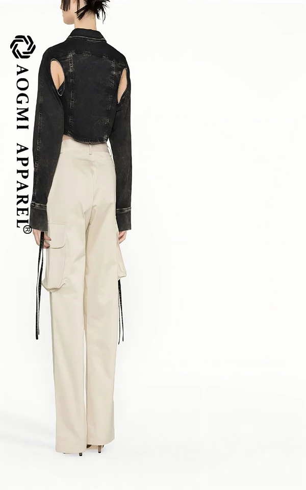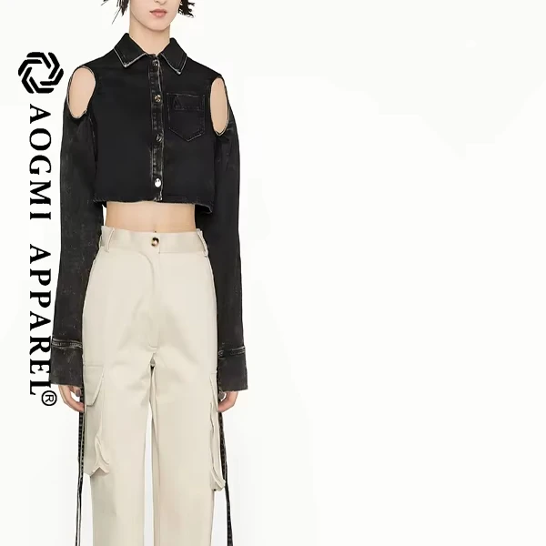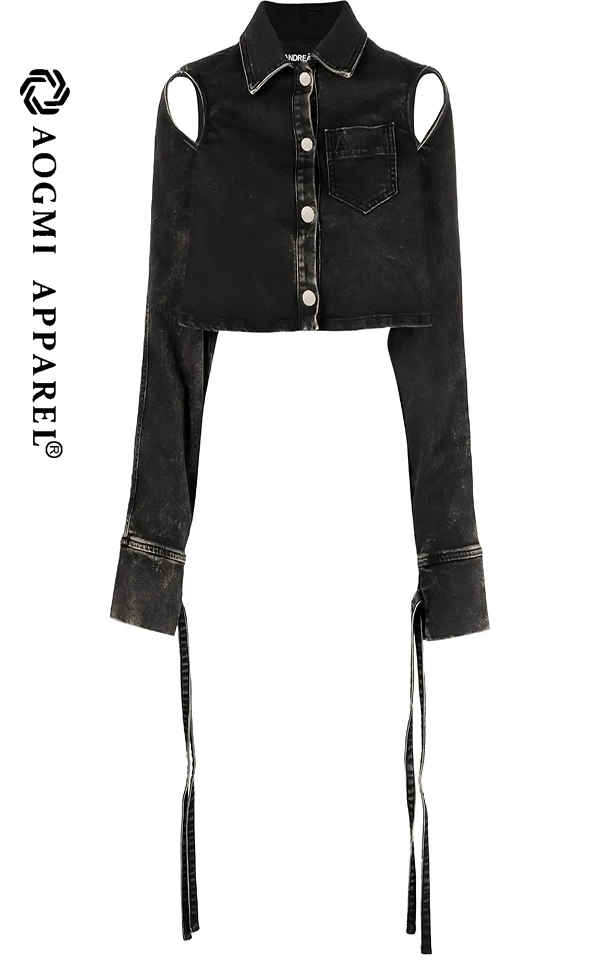 AOGMI Haute Couture Fashion Ladies Hollow Shoulder Long Sleeve Retro Classic Denim Autumn 3D Pattern
