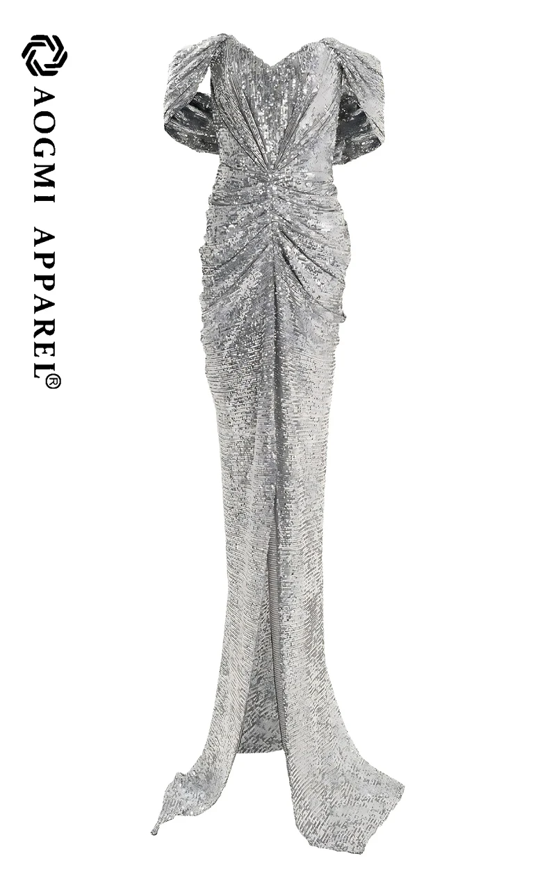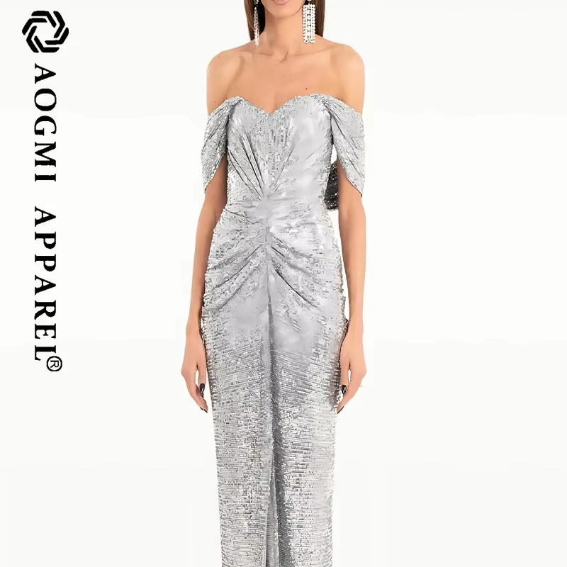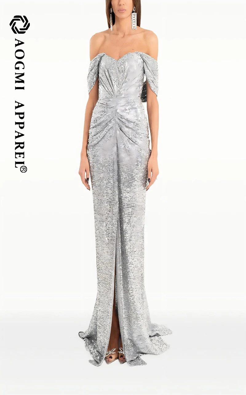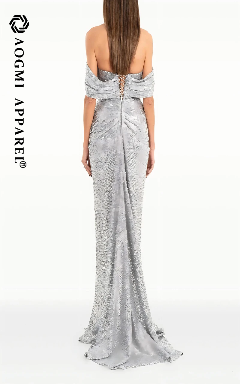 Haute Couture Fashion Ladies Mermaid Sequined Split Long Gown Off-the-Shoulder 3D Embroidery Eco-Friendly
