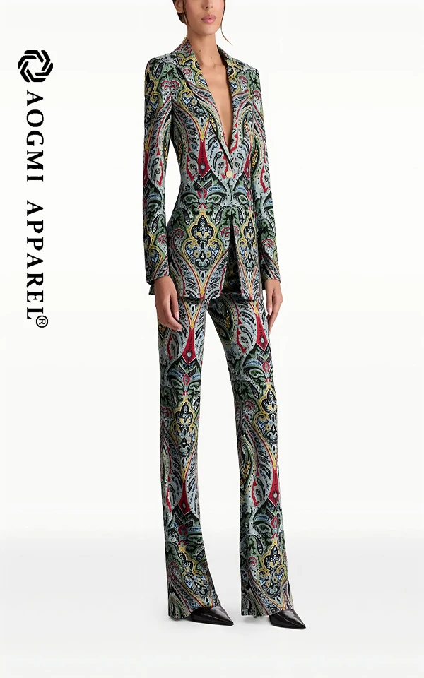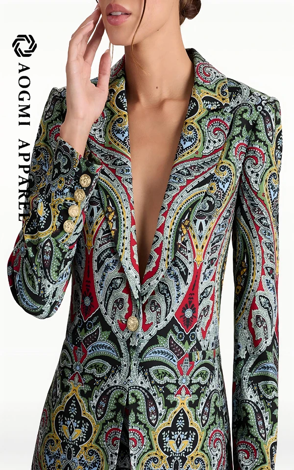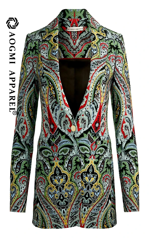 High-End Custom Fashion Ladies Wool/Silk 3D Embroidery Anti-Wrinkle Long Sleeve Floral Printing Niche Design Unique Style Blazer