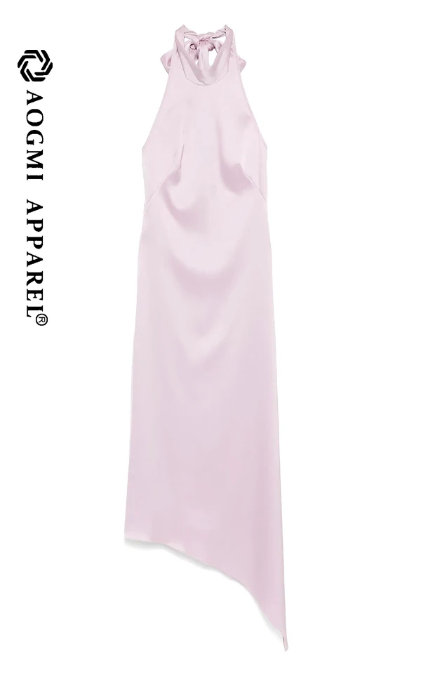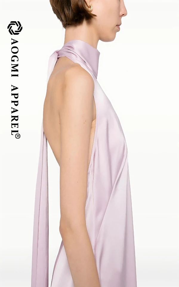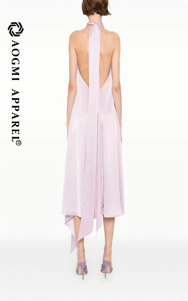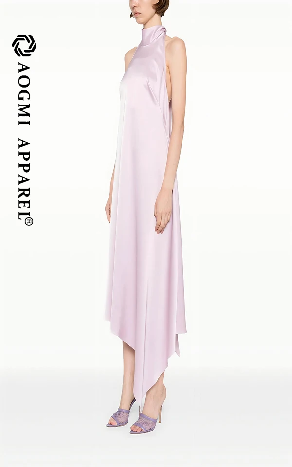 Haute Couture Fashion Ladies Sleeveless Neck Halter Asymmetrical Maxi Dress 100% Silk Eco-Friendly