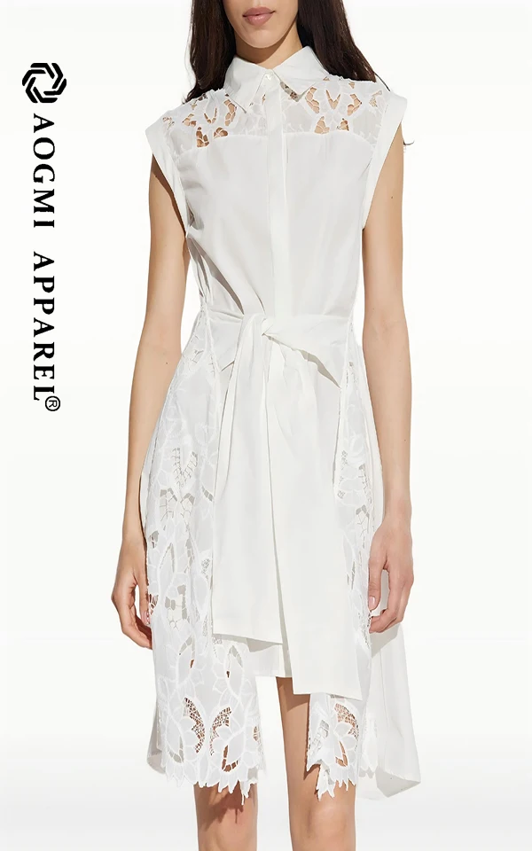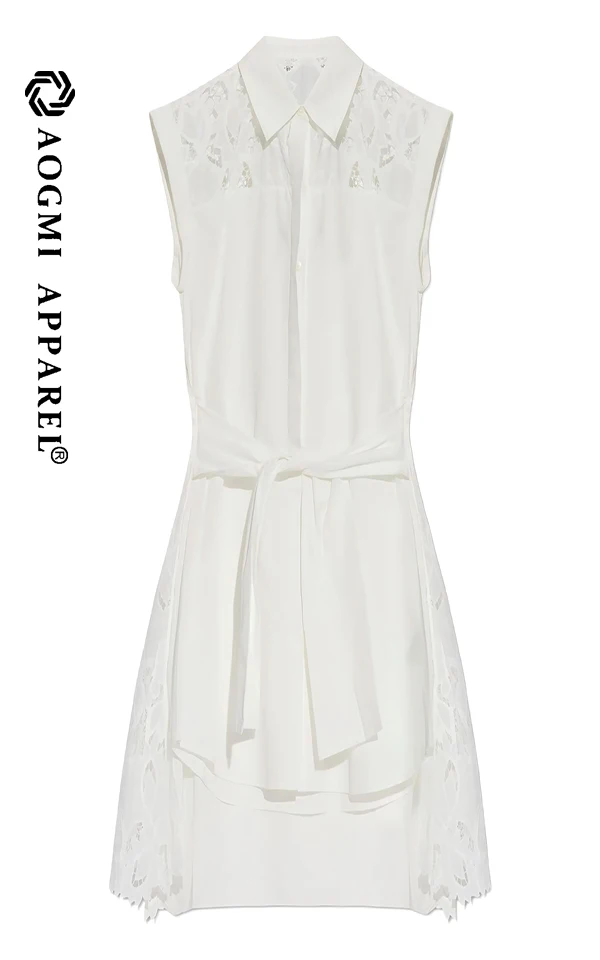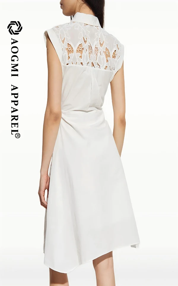 Haute Couture Fashion Ladies 100% Cotton Button Asymmetrical Plaid Satin Eco-Friendly Mini Hollow Dress
