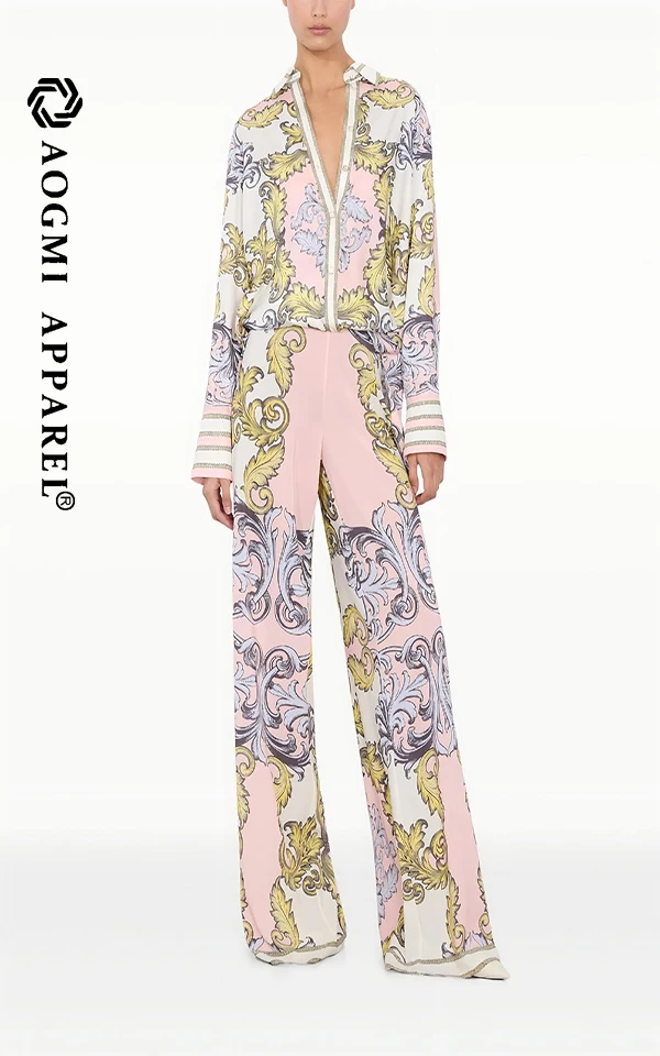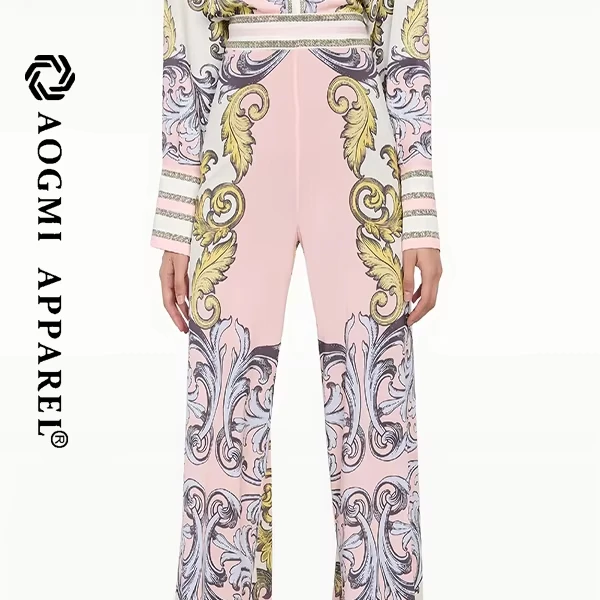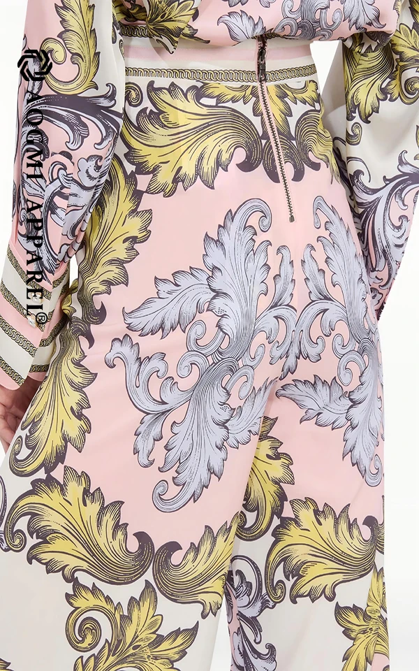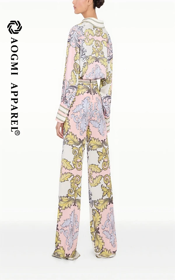Haute Couture Fashion Women's Wide Leg Pants Cut High Loose Floral Pattern Eco-Friendly Wear-Resistant Fabric Durable Modified