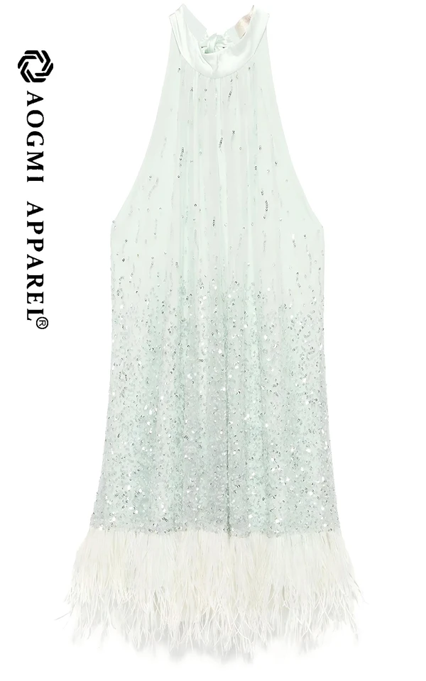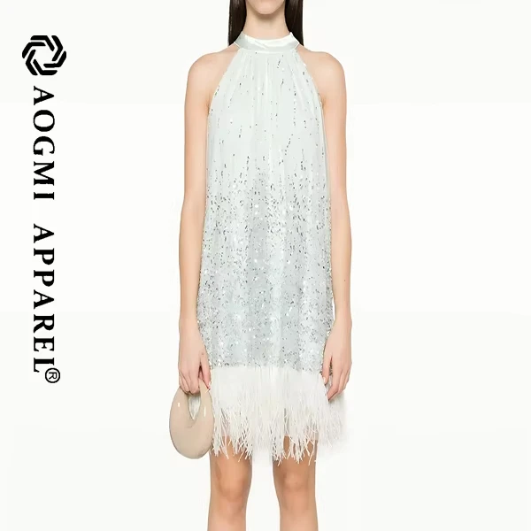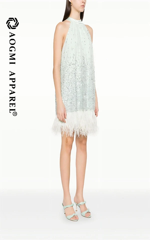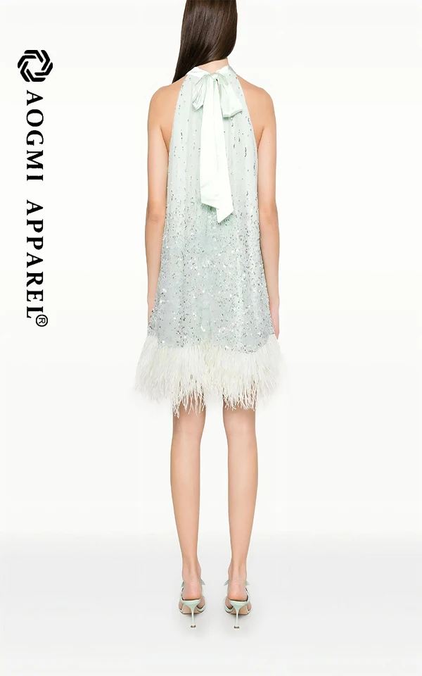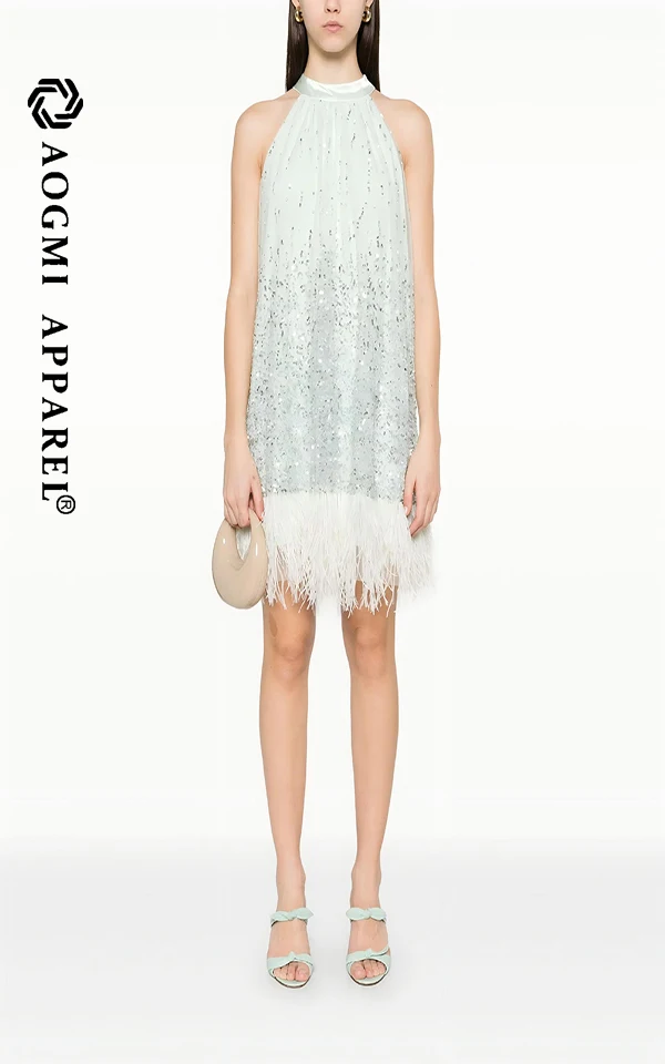 Haute Couture Fashion Ladies Light Luxury High-End Temperament Halter Neckline Sleeveless A-Line Silhouette Satin Fabric Dress