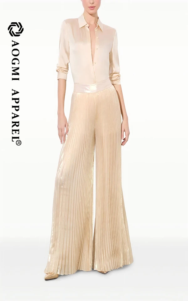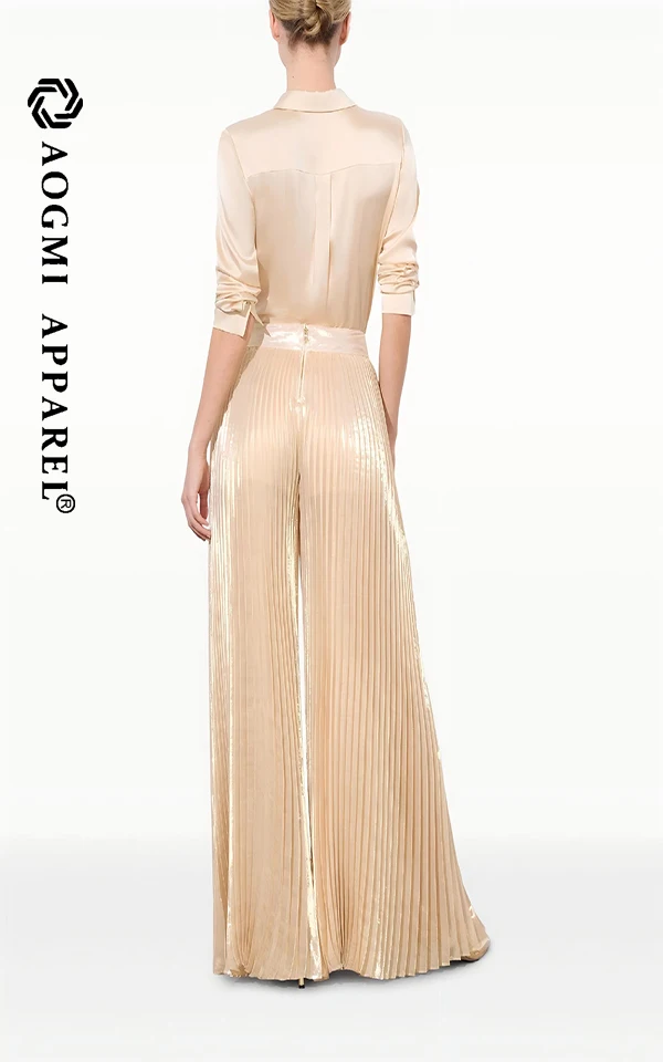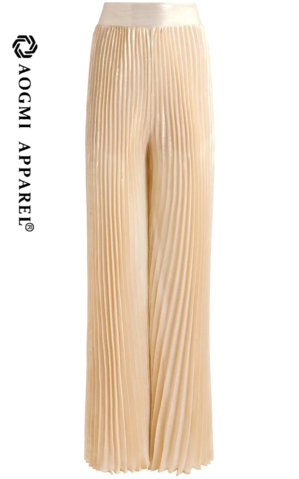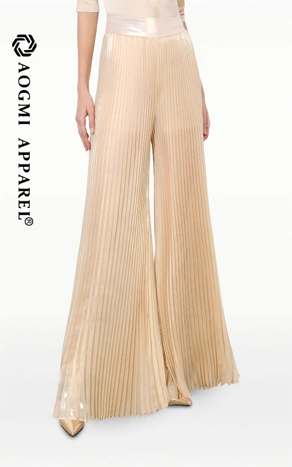 Couture Fashion Women's Pleated Loose Wide Leg Pants Viscose/Polyester Woolen Fabric Zipper Fly Autumn
