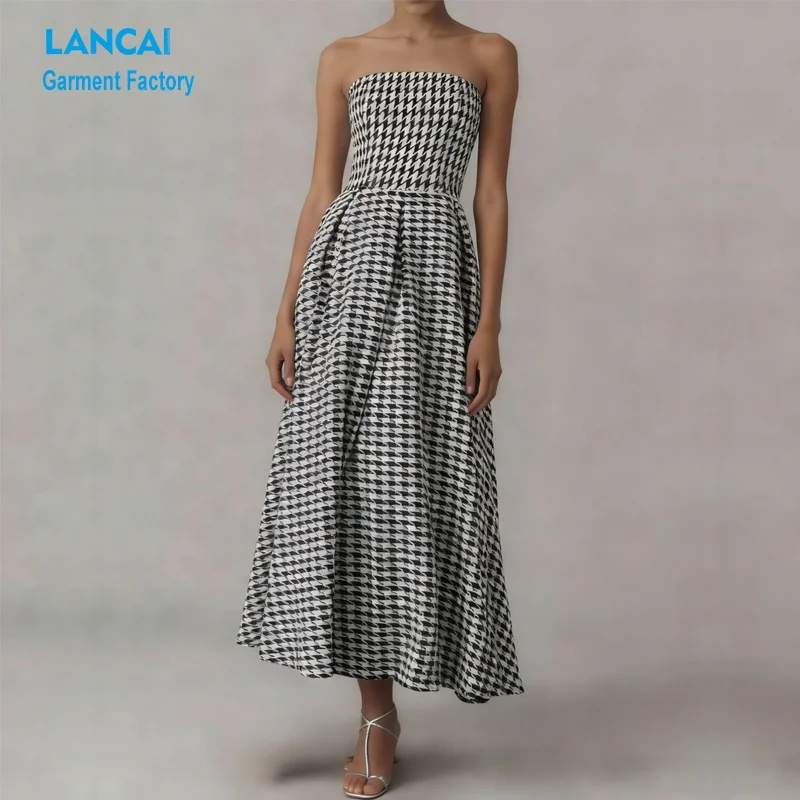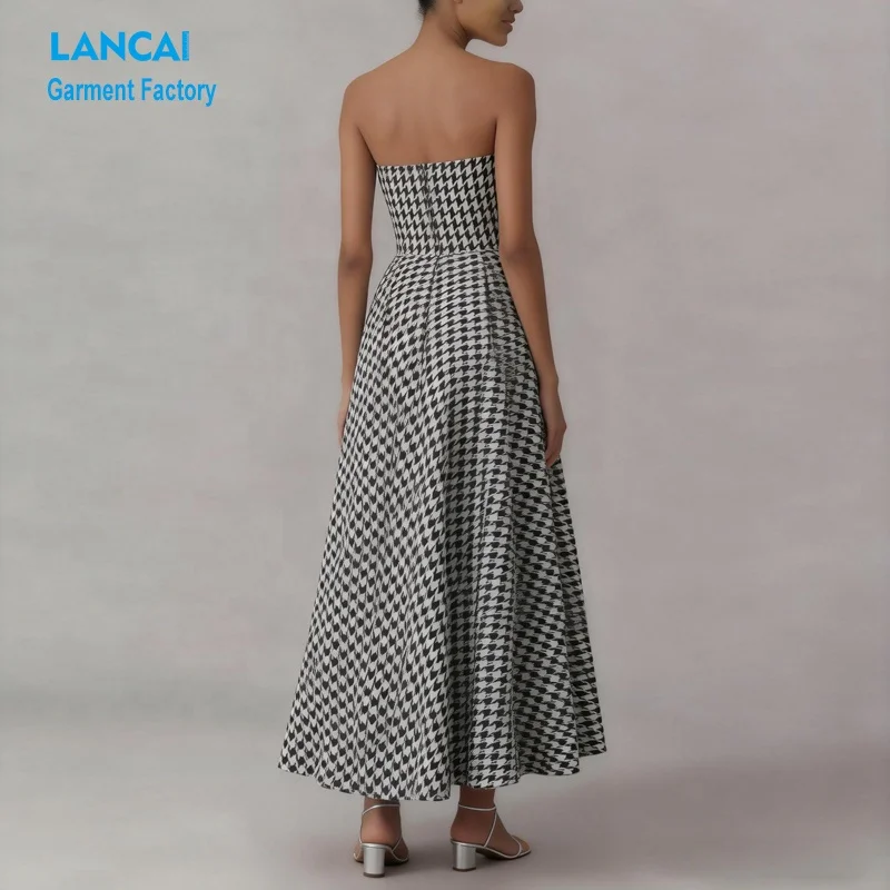 Custom Apparel Manufacturers Wholesale Boutique Clothing Women Strapless a Line Tweed Midi Dresses