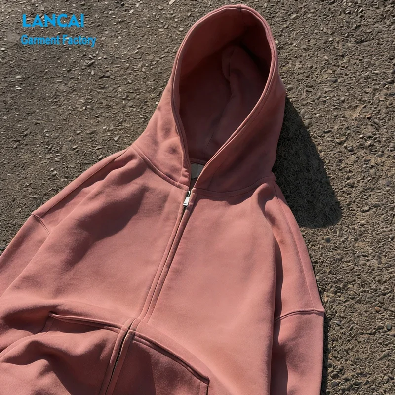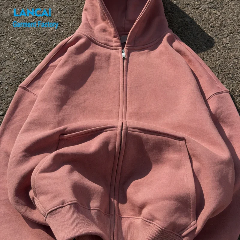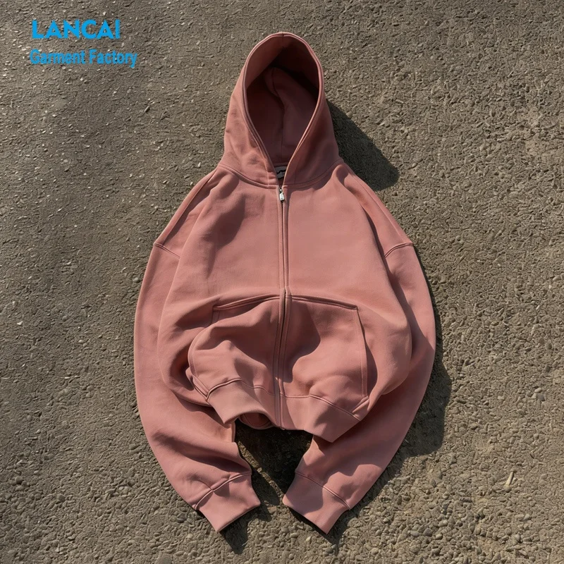 Custom Logo Hoodies Solid Blank Heavyweight Cotton Fleece Oversized Zipper Sweatshirts Streetwear Unisex