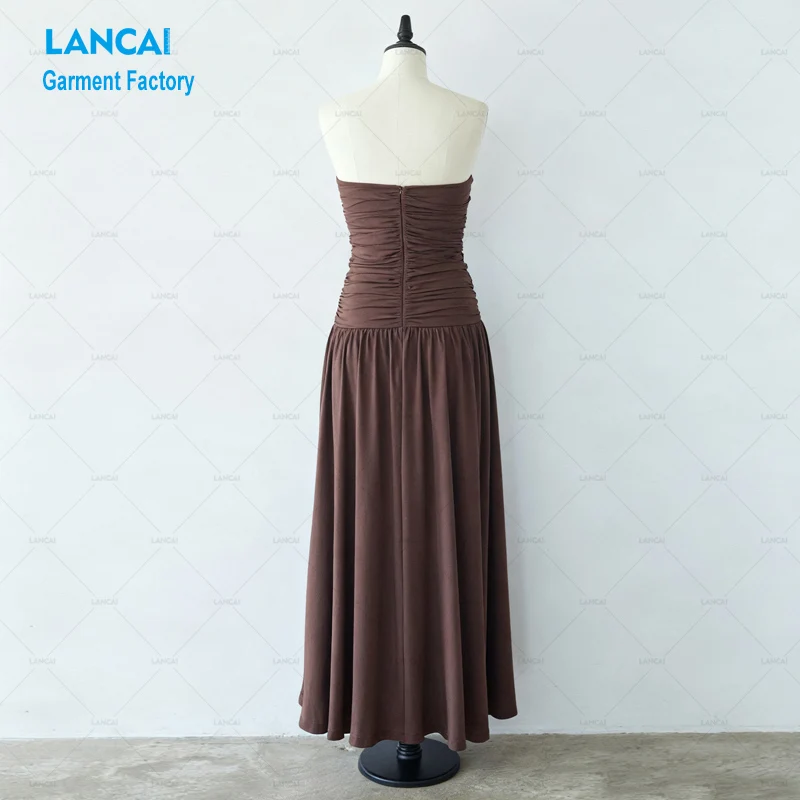 Elegant Ladies Strapless Maxi Dress High Quality Ruched Backless Summer Long Satin Tube Dresses