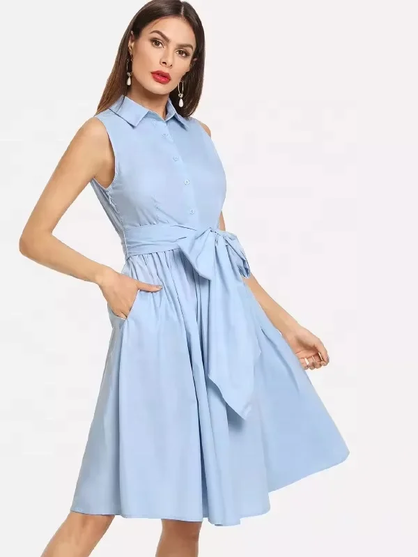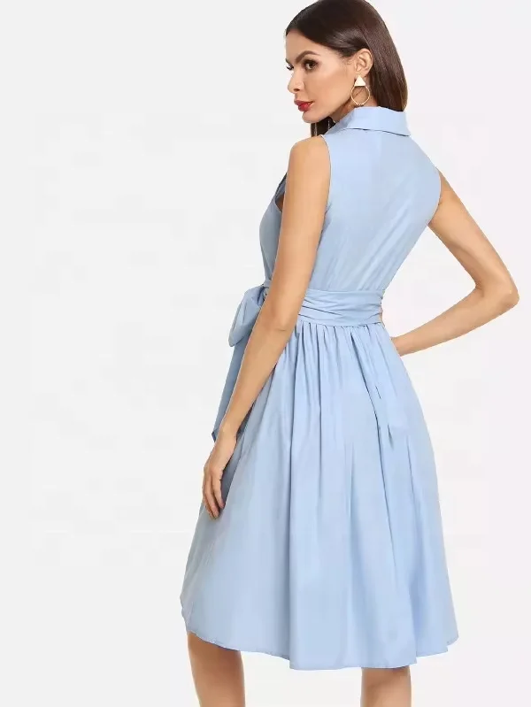TAOP&ZA 2025 Women's Summer Vintage Shirt Dress Simple Fashion Temperament Belt Lapel Sleeveless for Spring Autumn Model 4043072