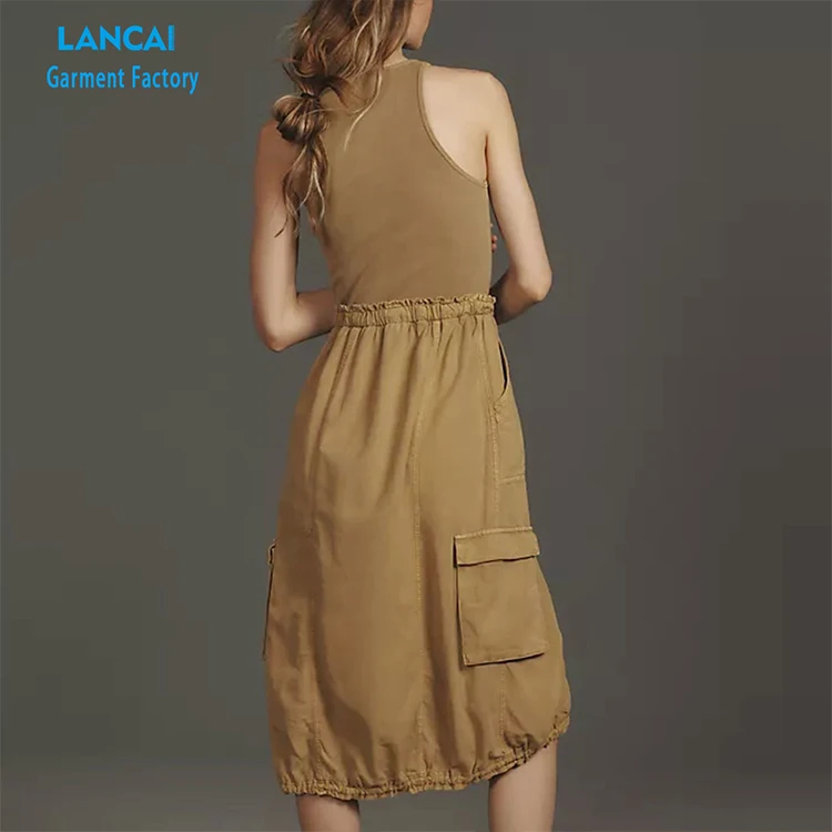 Fashion Custom Slit Women Cargo Skirt Personality Pocket Stitching High Waist Bow Skirt Women