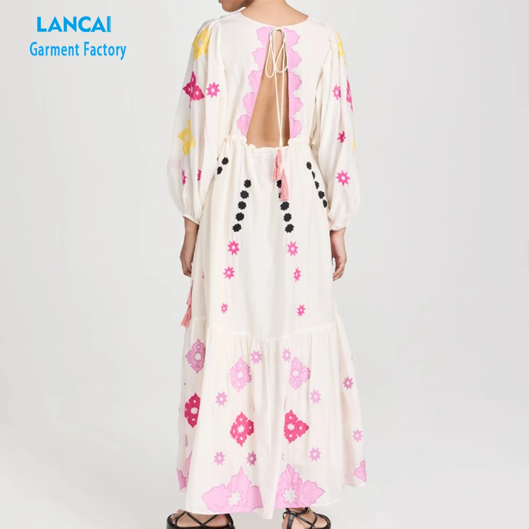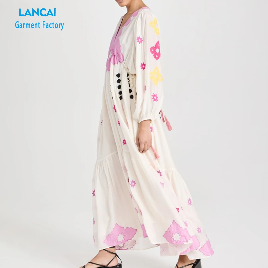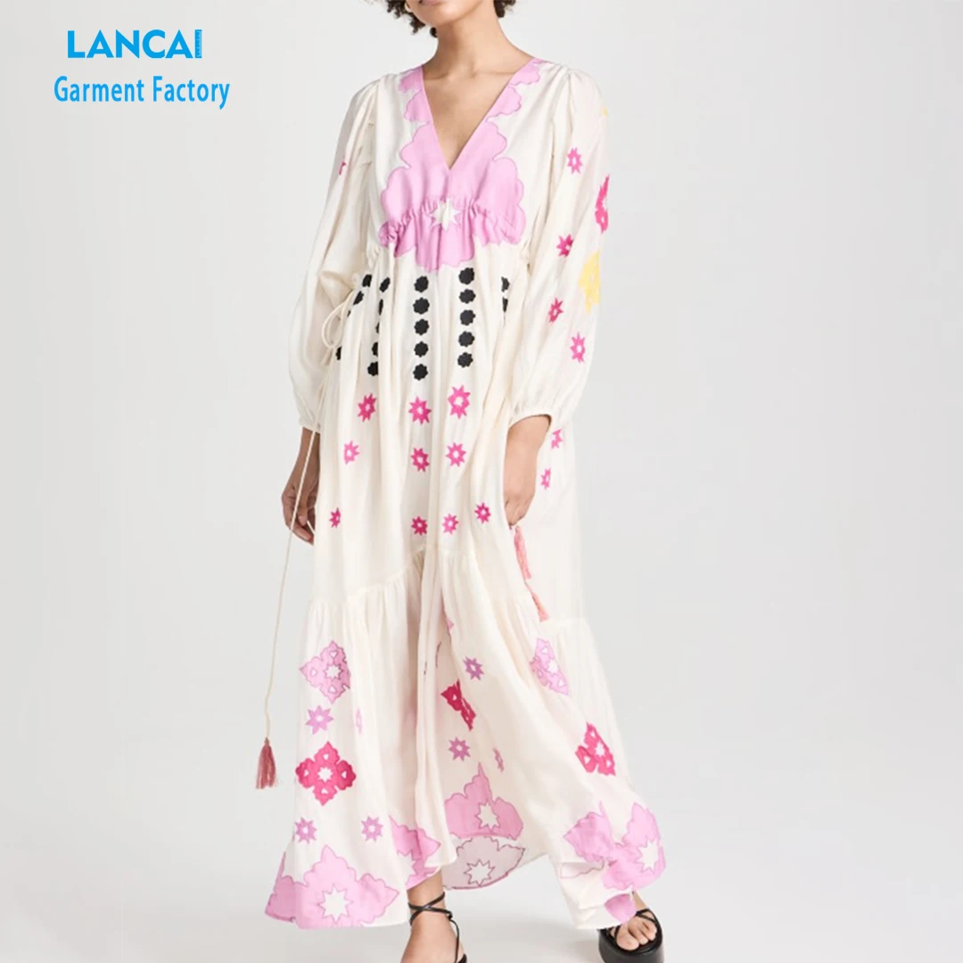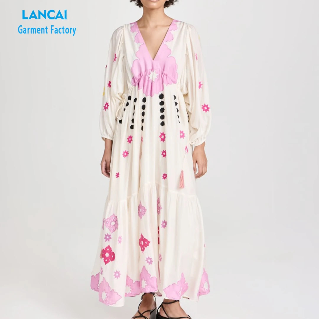 Oversized Tailored Women's V-neck Lace Print Patchwork All-in-one Holiday Dress