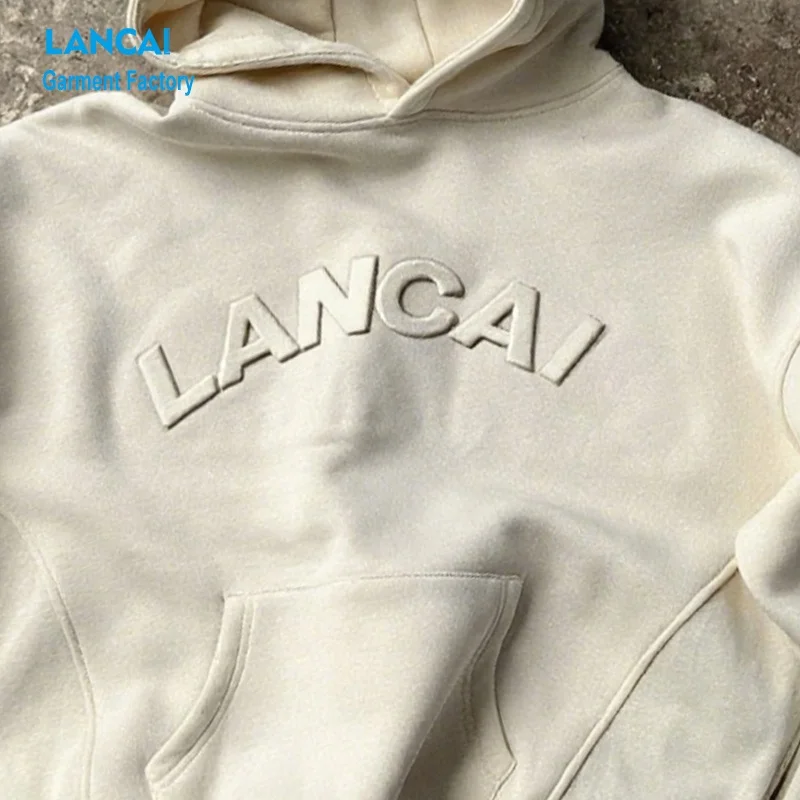 Lancai Clothing Manufacturer Customized Women 3D Embossed Hoodies High Quality Streetwear Cotton Pullover Hoody Sweatshirts