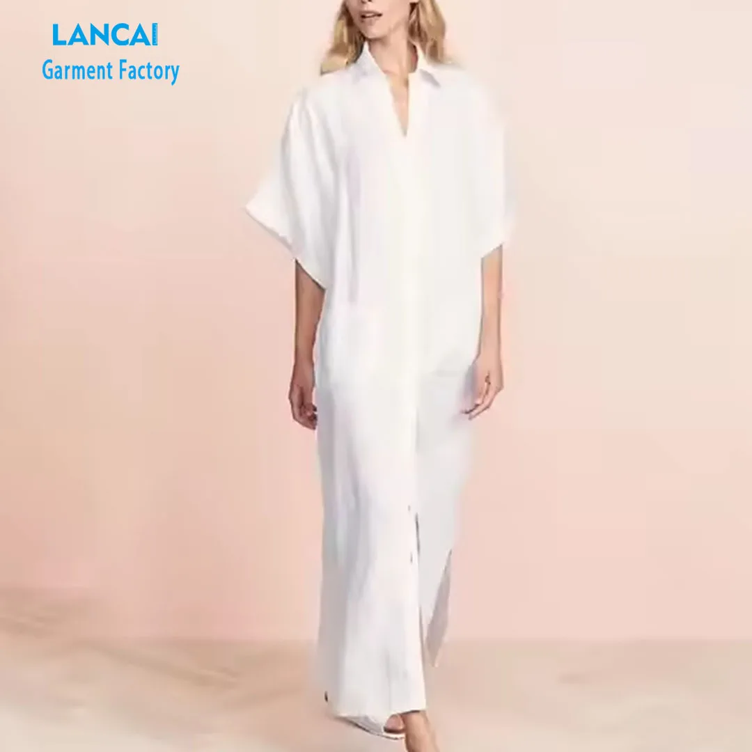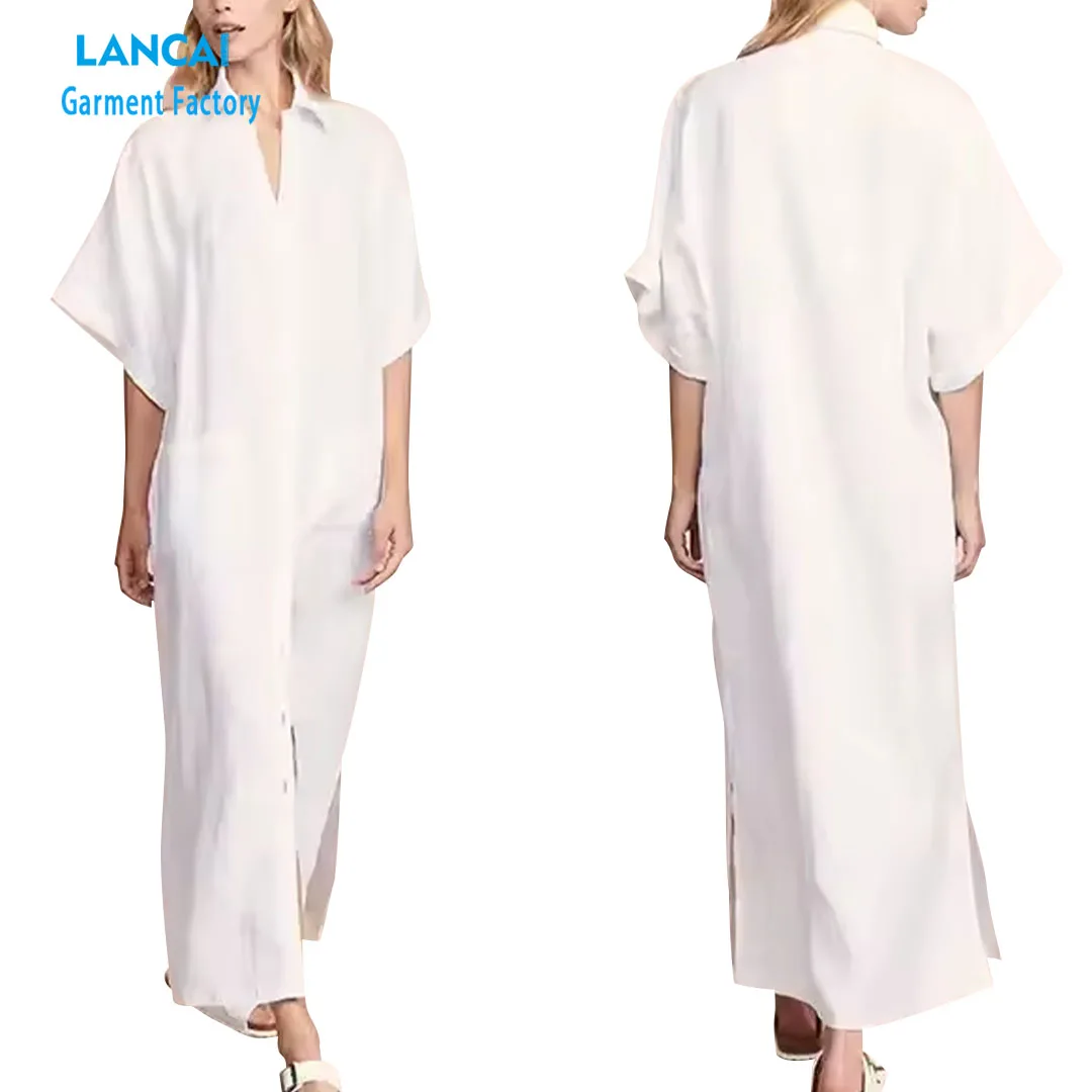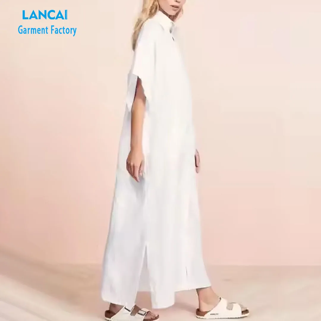 New Fashion Custom Casual Women Maxi With Buttons Slit Bottom Summer Dress Elegant Fashion Design