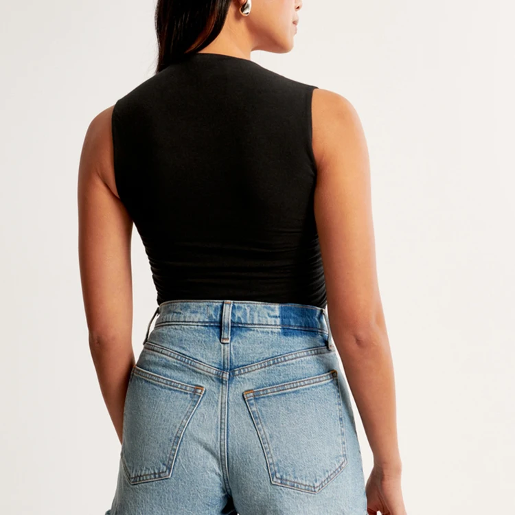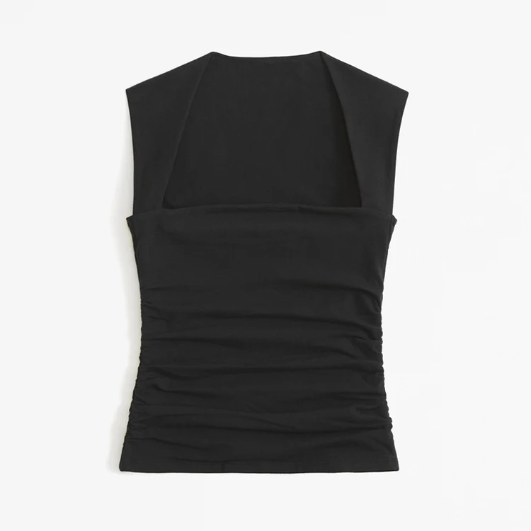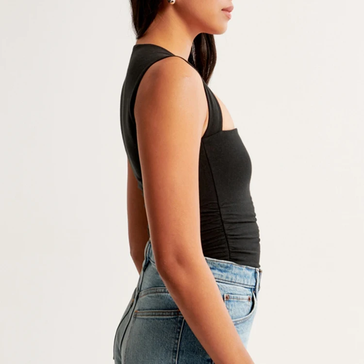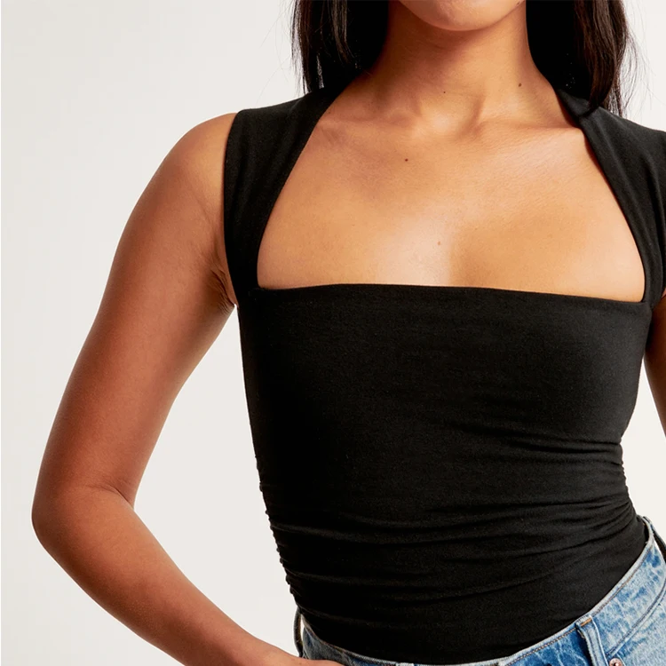 Custom logo Blank square Collar Short Sleeve Vest Elastic Cotton Manufacturer Women Tank Tops
