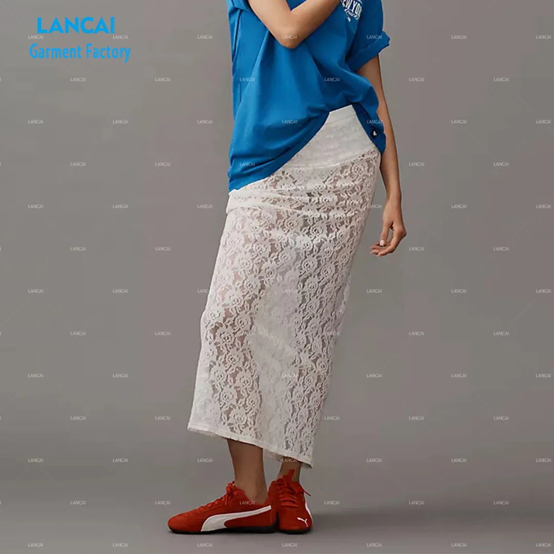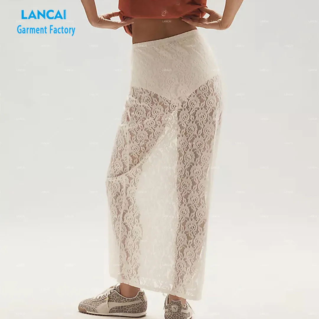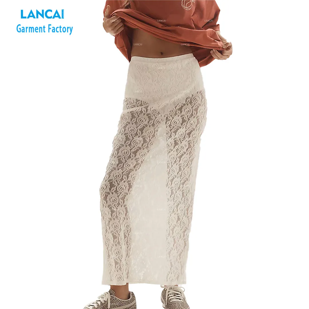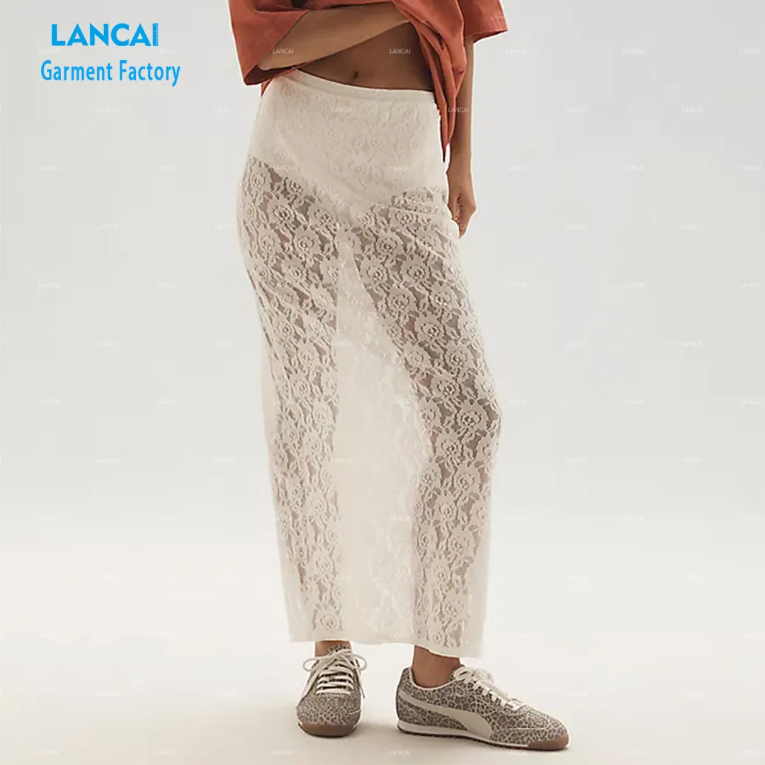 Women's Elegant Vintage Midi Skirt Sheer Lace with Pull-on Styling Flowy Low Waist Beach Party Fashion