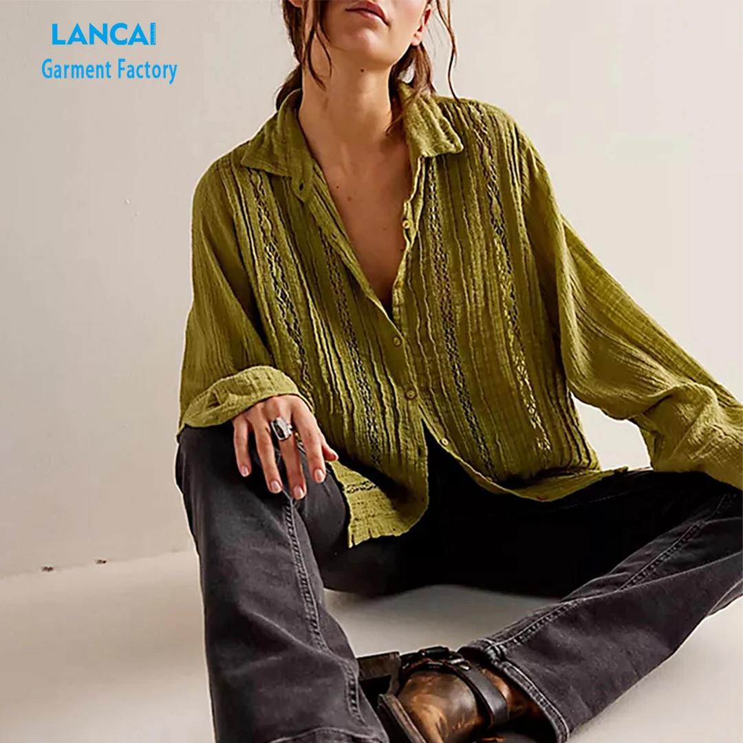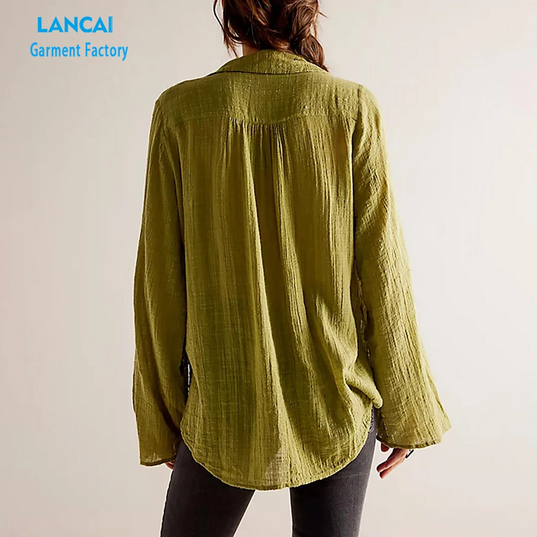 Wholesale Quality Women Button Down Shirt Puffs Sleeve Plus Size Linen T Shirt Long Sleeve Tops Shirts Women