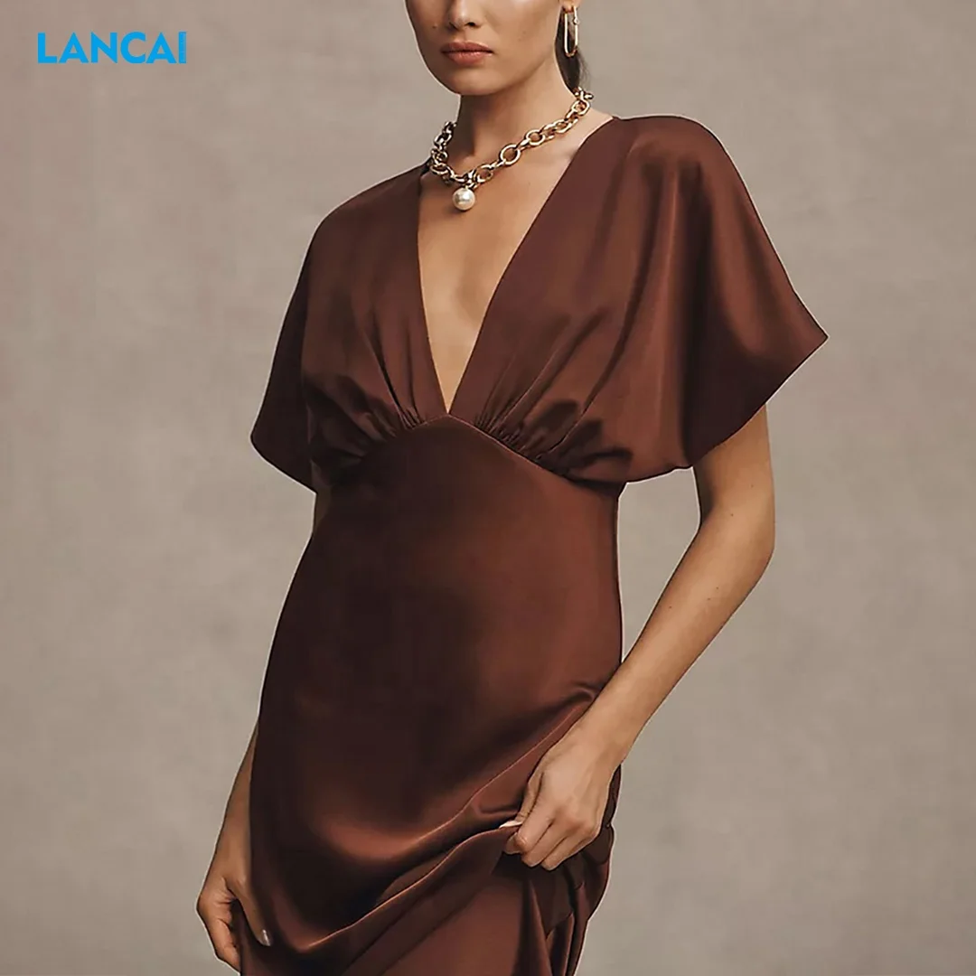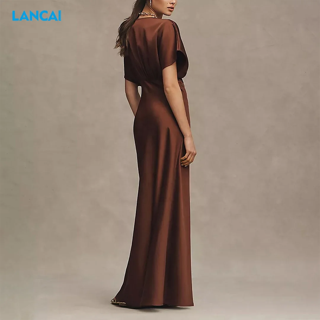 Summer V-Neck High Quality Fabric Evening Dress Women's Maxi Unique Cap Sleeves Prom Dress Customized