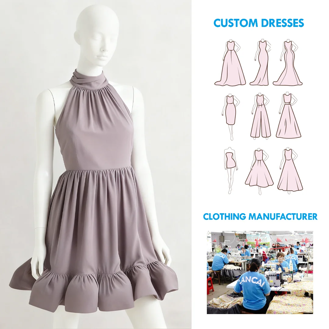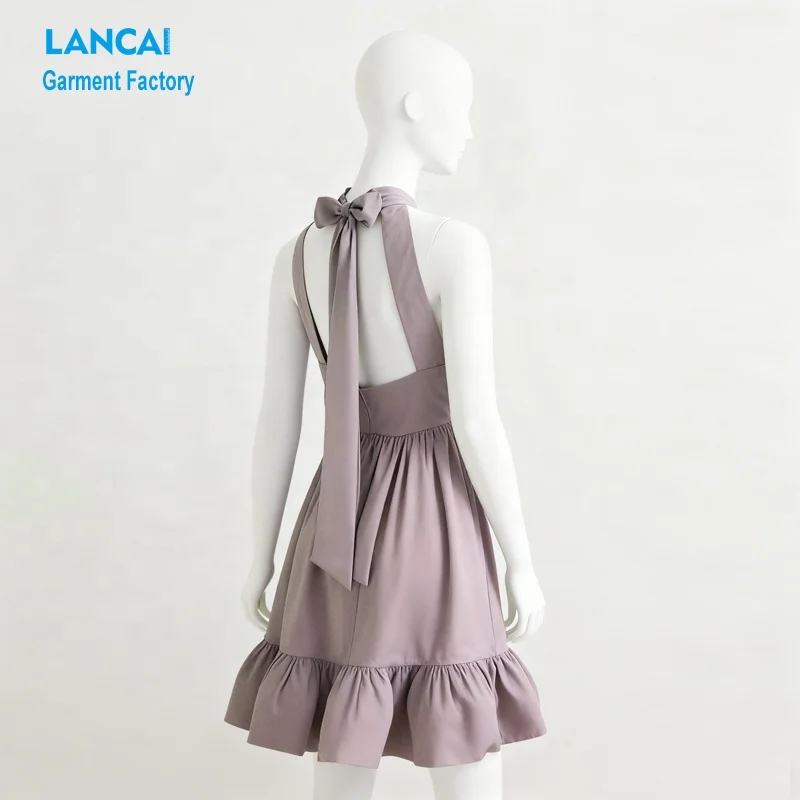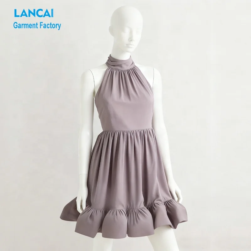 Custom Summer Clothing Manufacturer Wholesale Satin Halter Neck Ruffle Mini Dresses for Women