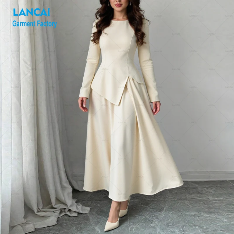 Cut and Sew Clothing Manufacturer Custom Elegant Plain Long Sleeve Top and Flowy Maxi Skirt Two Pieces Dress Set for Women
