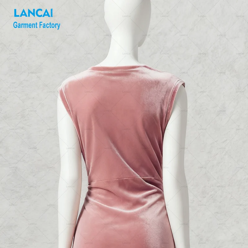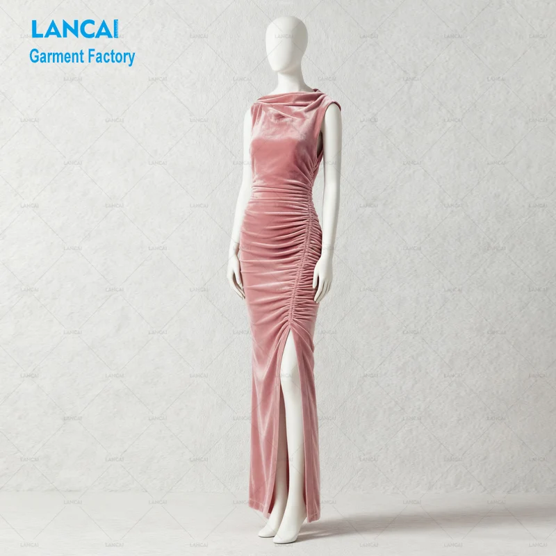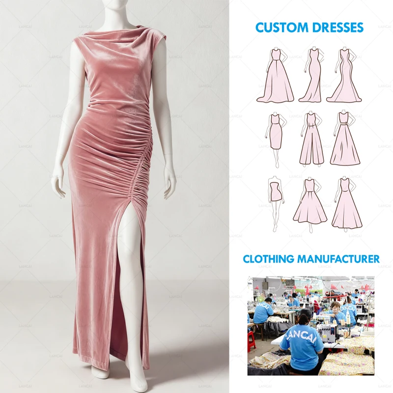 Design Your Own Private Label Dress Makers Customized Cowl Neck Slit Velvet Dresses for Casual Party Evening Wear