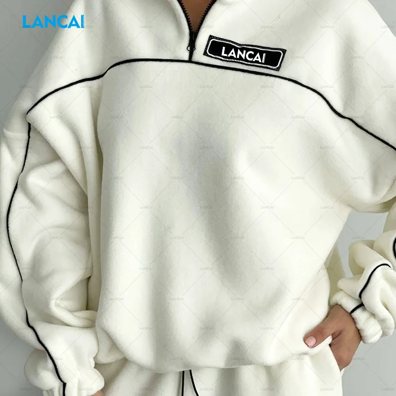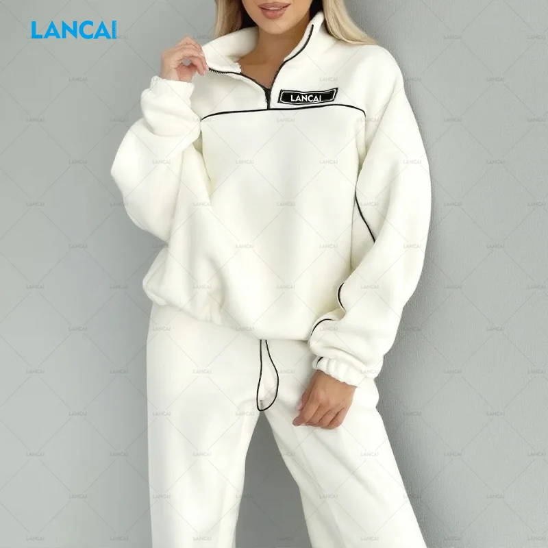Custom Logo Women Zipper Pullover Hoodie and Jogger High Quality Embroidered Streetwear Sportswear Tracksuit Sets for Women