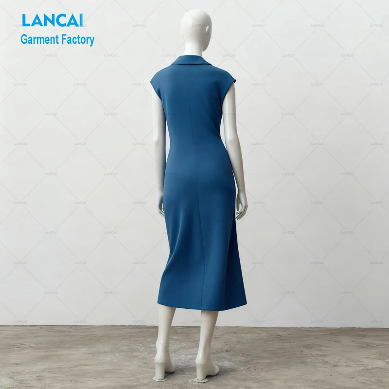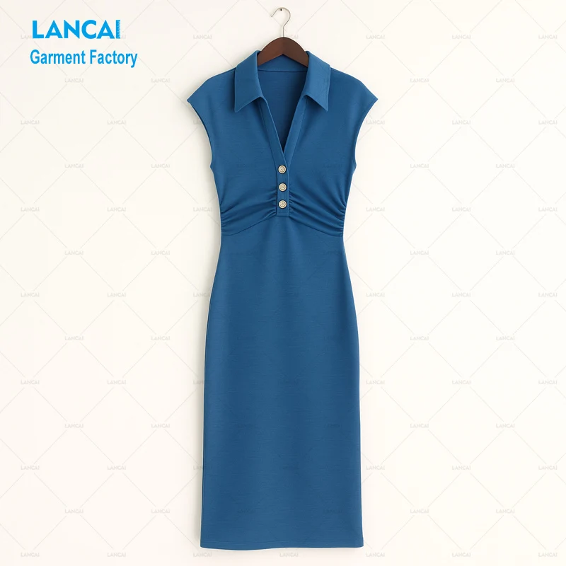 Lancai Custom Apparel Manufacturer OEM Lady Elegant Jersey Sheath Polo Dress with Ruched Waist Customizable