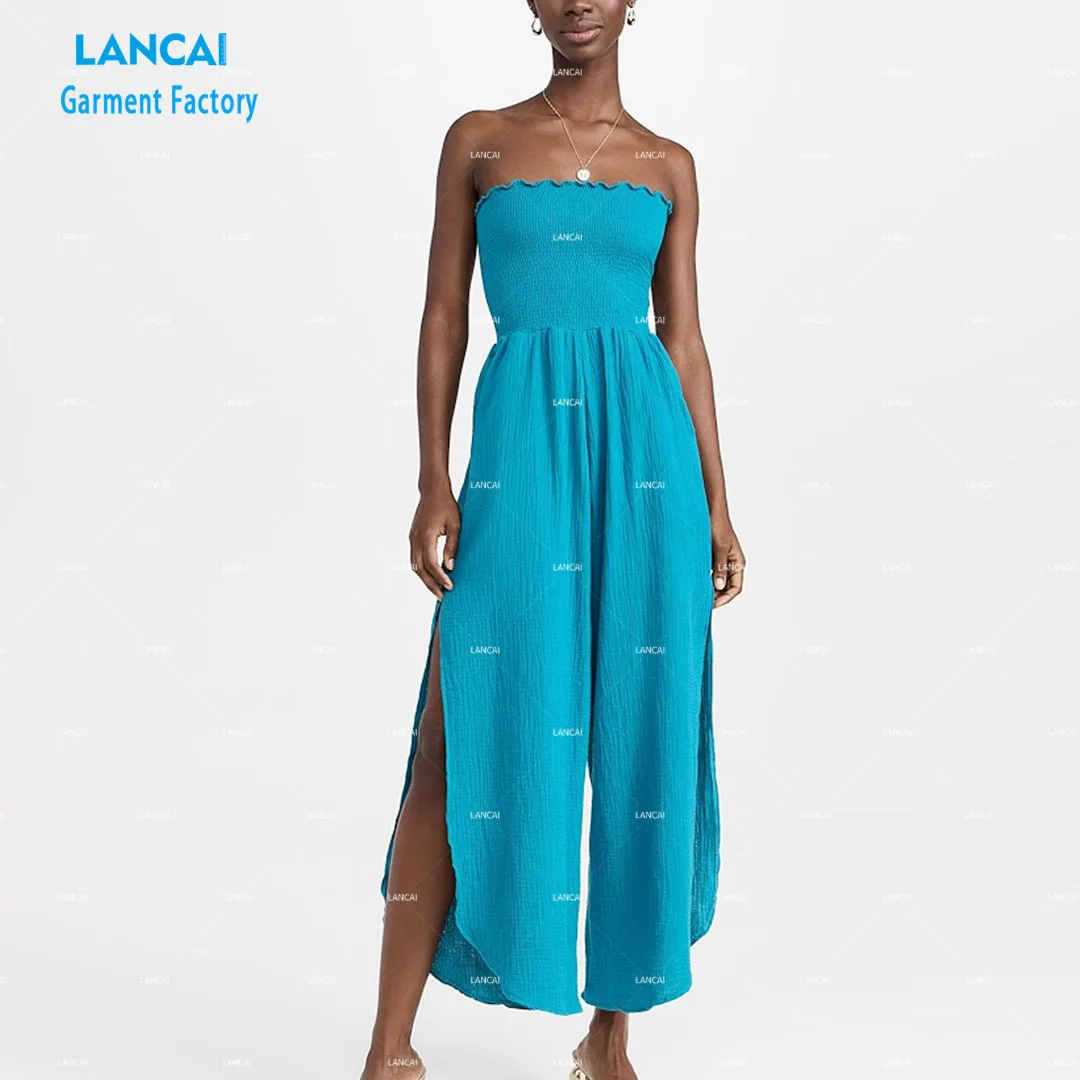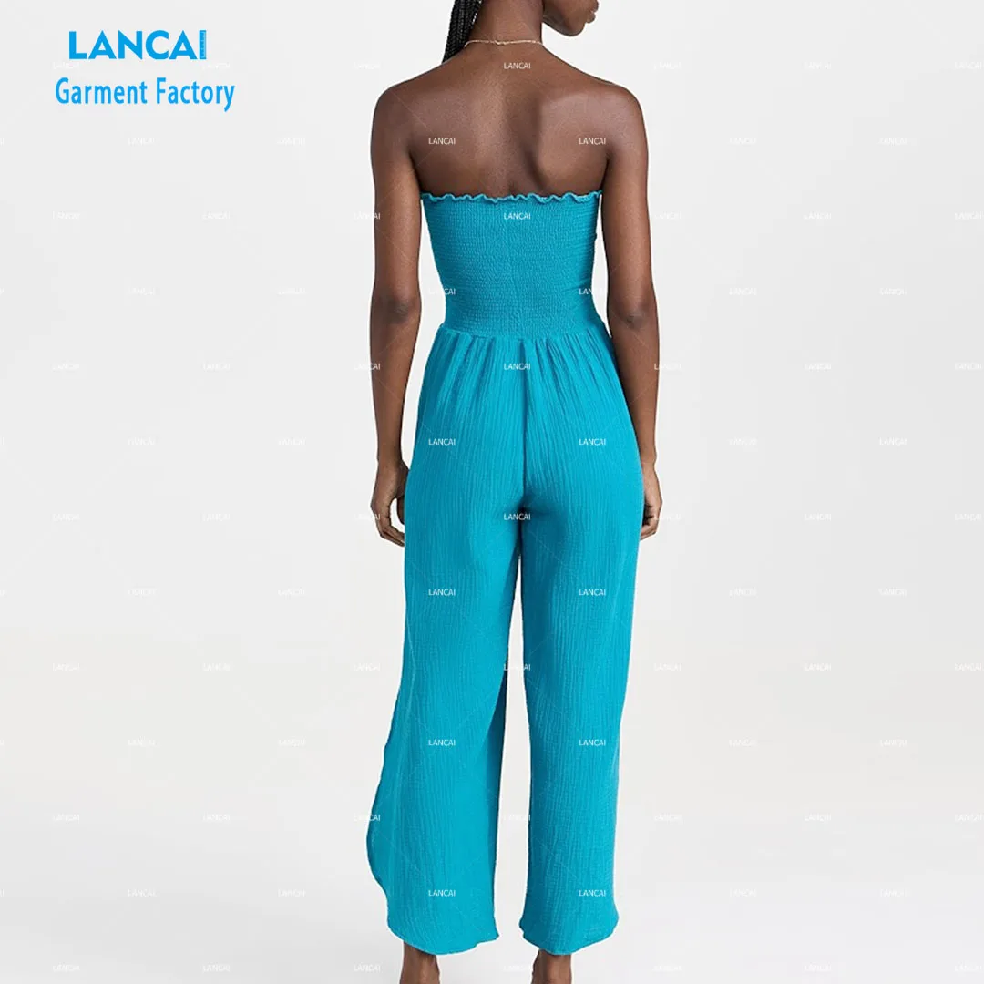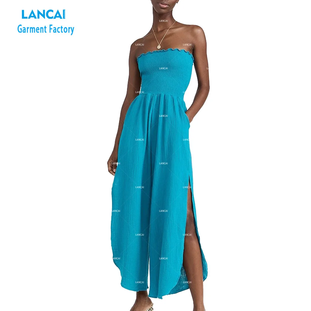 Apparel Manufacturer Custom Design Womens Clothing Wide Leg Jumpsuit Casual Dress Pure Color