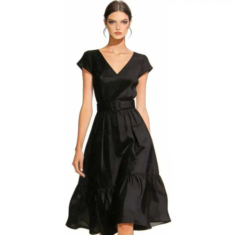Small MOQ Custom Sweet Mandarin Collar off Shoulder Dress-Summer Factory Plus Size Multiple Fabrics Short Lead Time