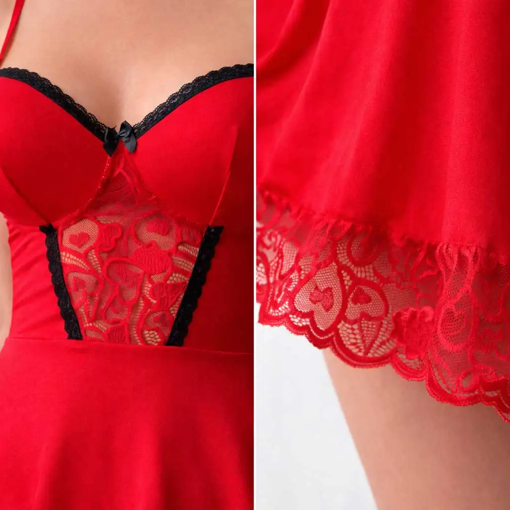 Sexy Women Backless V-neck Satin Cami Nightdress with Lace Hem Elegant Nightwear