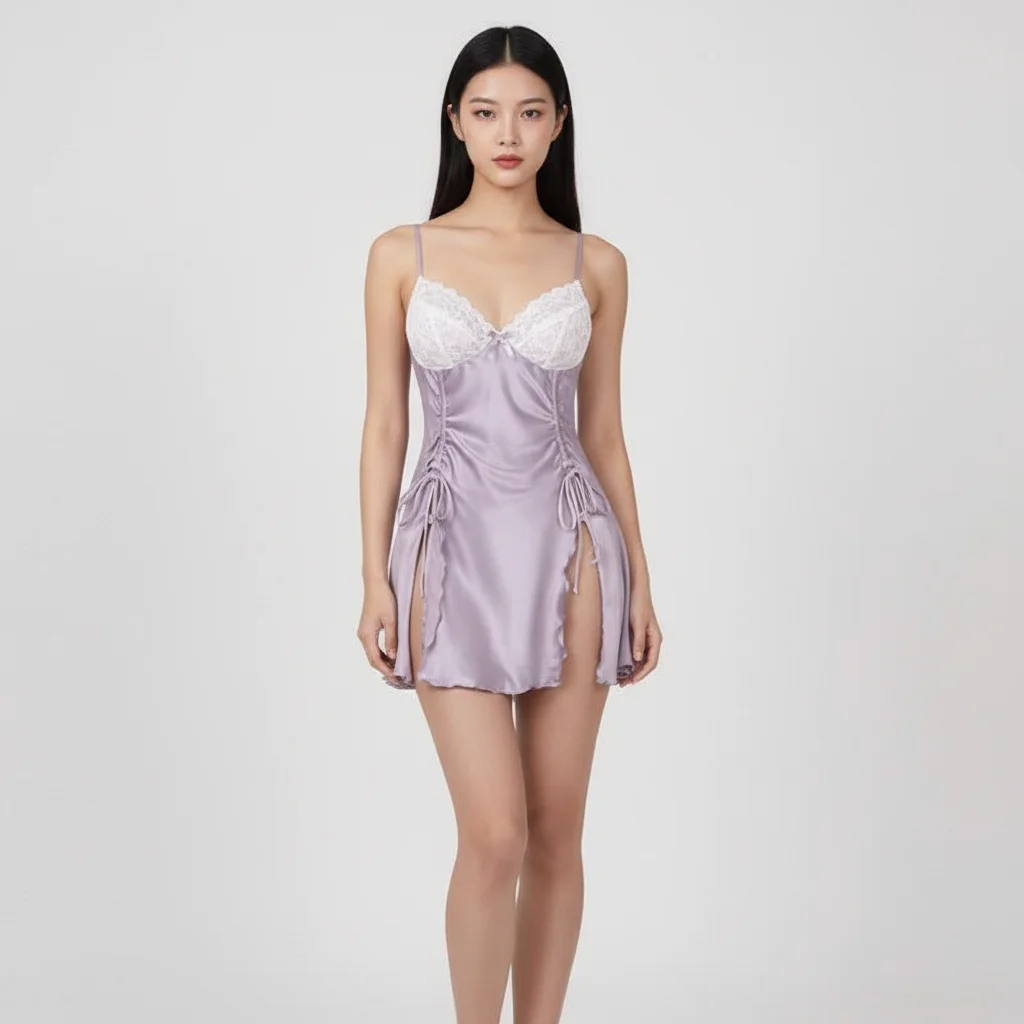 Sexy Women Floral Nylon Lace Nightgown Soft Silk Screen Printed Front Custom Logo ODM Breathable for Fashion Elegant Lingerie
